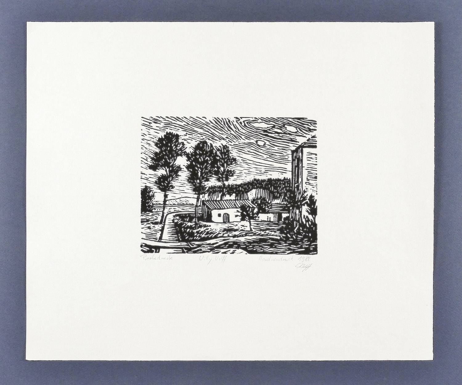 In Bleistift bezeichnet: ″Willy Wolff″, dazu signiert vom Sohn des Künstlers: ″Wolff″ sowie datiert unten rechts. Auflagenbezeichnung: ″Probedruck″. – Vom Sohn des Künstlers autorisierte posthume Auflage im Handdruck. – Leichte Knickspurenim äußeren Rand. Guter Erhaltungszustand.