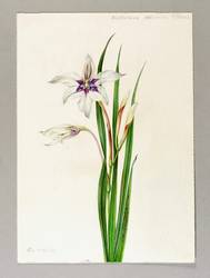 Links unten in Bleistift signiert: ″Elsa M. Felsko″. Rechts oben betitelt: ″Acidanthera. Abessinische Gladiole″. – Botanisches Aquarell von allerhöchster zeichnerischer wie koloristischer Qualität. – Tadellos erhalten. Sehr guter Zustand.