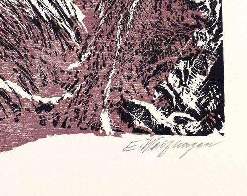 Ernst Wolfhagen (1907 Hannover - 1992 Hannover). Deutscher Maler, Grafiker und Kunsterzieher. 1923-26 Kunstunterricht bei Otto Gleichmann. 1926-28 Studium an der Technischen Hochschule Hannover (heute Universität Hannover) und an der Universität Heidelberg. 1928-33 Studium an der Staatlichen Kunstschule Berlin (heute Universität der Künste Berlin) bei Rudolf Großmann. Staatsexamen in Biologie, Philosophie und Kunst. 1933-67 als Kunstpädagoge im höheren Schuldienst tätig, zuletzt an der Elisabeth-Granier-Schule (Ricarda-Huch-Schule) in Hannover. 1935 Heirat der Bildhauerin Anneliese Lucke. 1941-48 Kriegsdienst und sowjetische Gefangenschaft. Studienreisen nach Italien und Frankreich. Neben der Malerei vor allem Holzschnitt und Farbholzschnitt (etwa 800 Blätter), aber auch Radierung. Gab einige Mappenwerke mit Illustrationen zu Cesare Pavese, Georg Trakl, Wilhelm Lehmann sowie französischer Lyrik von Charles Baudelaire, Guillaume Apollinaire, Gérard de Nerval und Antonin Artaud heraus.