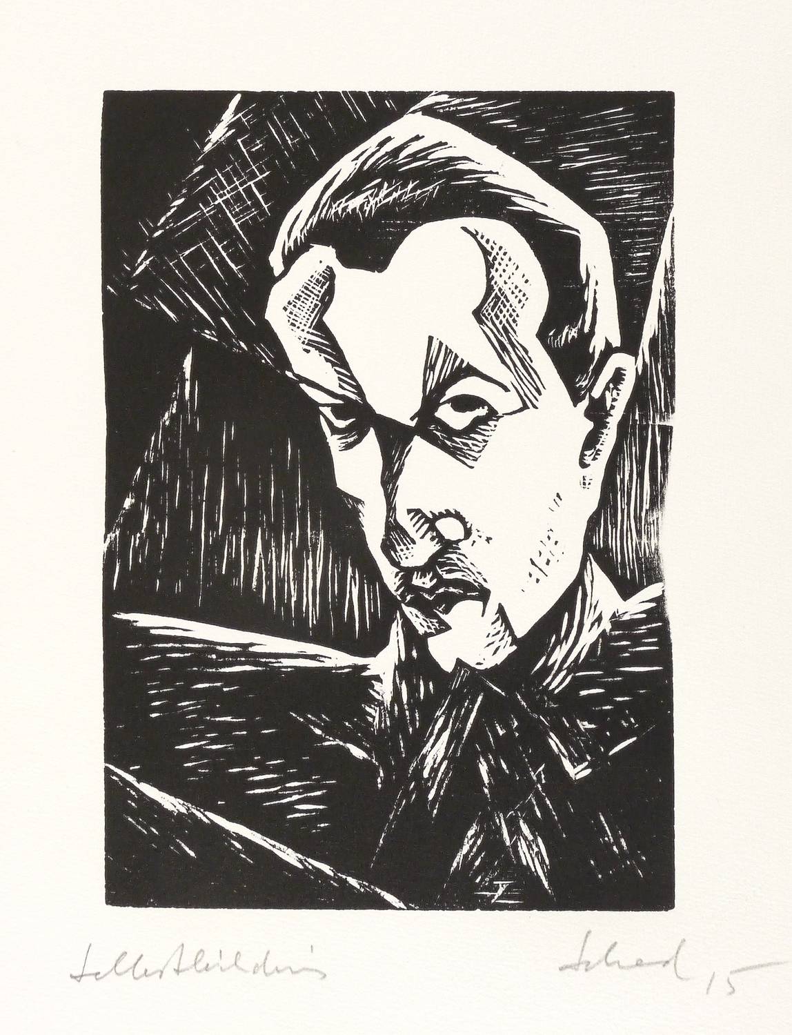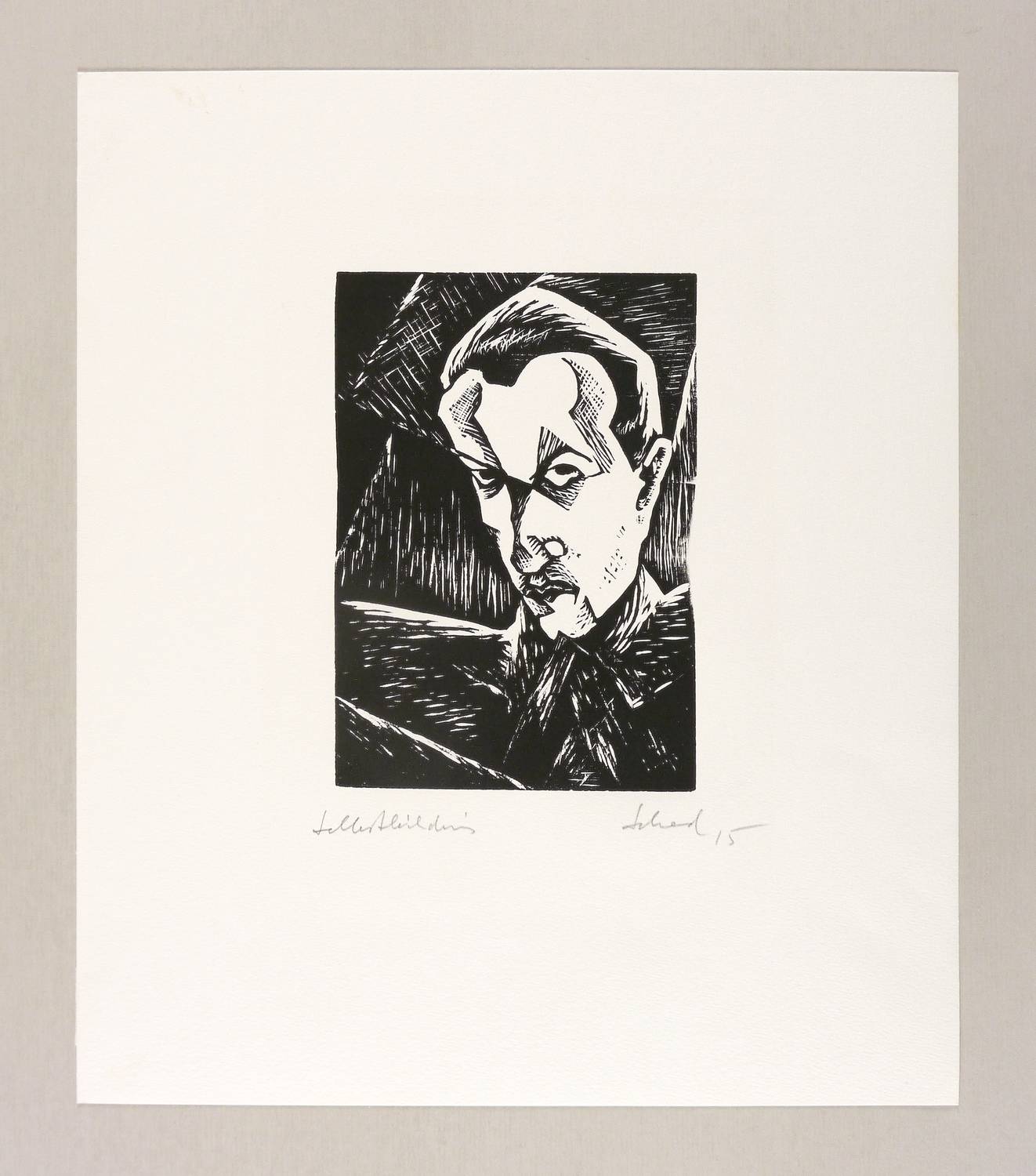 1915/1971. Holzschnitt, in Schwarz, auf leicht genarbtem weißem Velin. – Originale Künstlergrafik, von Christian Schad. – 17,4 x 12,3 cm (Darstellung / Druckbild), 35 x 30 cm (Blatt).