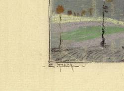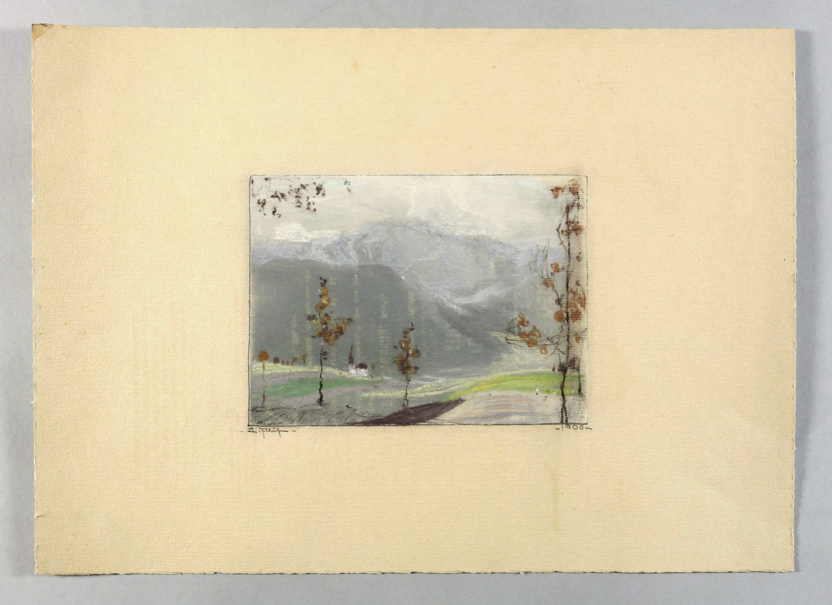 1906. Zeichnung / Pastellkreide, auf gelbem Karton. – Originale Künstlergrafik, von Leopold Jülich. – Unikat. – 14,0 x 18,9 cm (Darstellung), 31 x 42 cm (Blatt).
