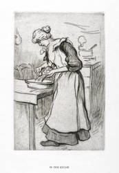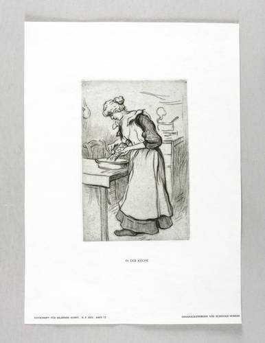 Aus: Zeitschrift für bildende Kunst (Leipzig: E.A. Seemann 1914), Bd. 25. – Nicht handsigniert. Links unten typografisch bezeichnet: ″ORIGINALRADIERUNG VON REINHOLD HOBERG″. Mittig: ″IN DER KÜCHE″. – Sehr guter Zustand.
