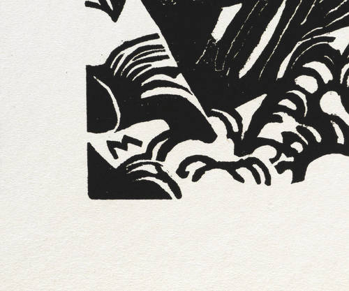 Lankheit 831,3. Hoberg-Jansen 26. – Aus: Genius. Zeitschrift für werdende und alte Kunst (München: Kurt Wolff 1919), Bd. 1. – Nicht handsigniert. Verso typografisch bezeichnet: ″Franz Marc / Aus der Tierlegende. Original-Holzschnitt.″ – Unbeschnittenes Exemplar. Hervorragend erhalten. Sehr guter Zustand.