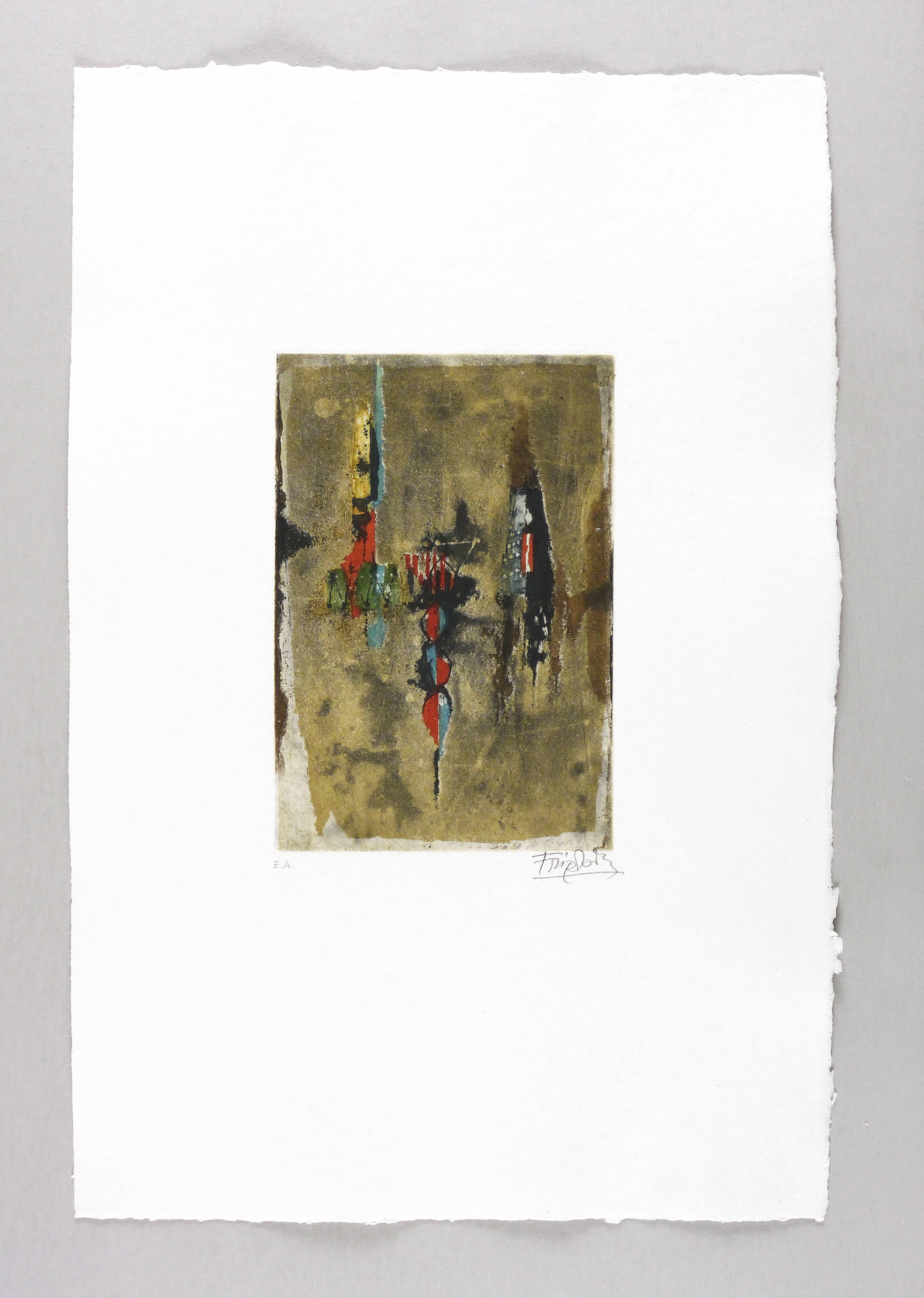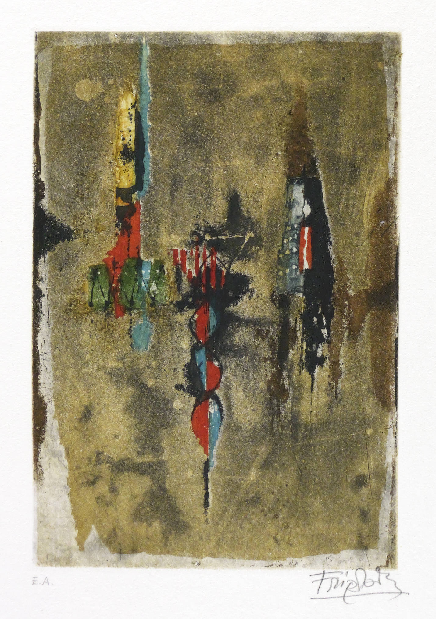 1964. Farbradierung / Aquatinta, in 8 Farben, auf hellchamois Bütten. – Originale Künstlergrafik, von Johnny Friedländer. – Künstlerexemplar (e.a.). – 21,4 x 14,5 cm (Darstellung / Platte), 50 x 34 cm (Blatt).