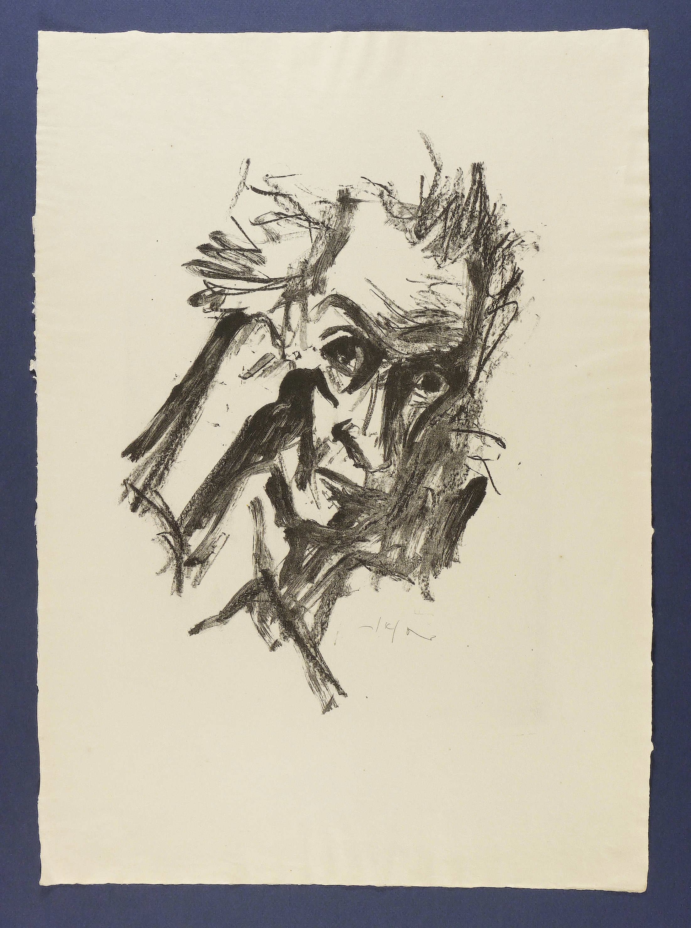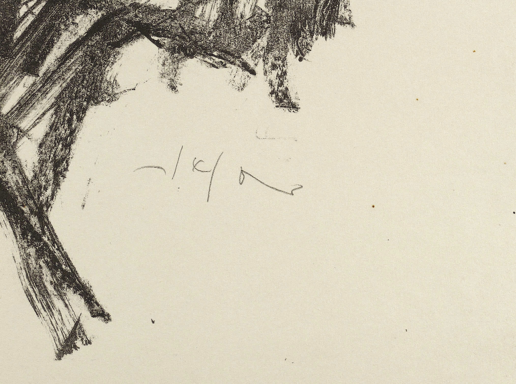 Um 1980. Lithografie / Pinsel- & Kreidelithografie, in Schwarz, auf gelblichem Büttenpapier. – Originale Künstlergrafik, von Heinz Tetzner. – 40,6 x 29,5 cm (Darstellung / Druckbild), 60 x 25 cm (Blatt).