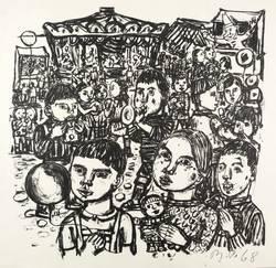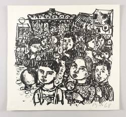 1968. Lithografie / Kreidelithografie, in Schwarz, auf gelbem Velinkarton. – Originale Künstlergrafik, von Tina Bauer-Pezellen. – 38,2 x 39,2 cm (Darstellung), 41 x 44 cm (Blatt).