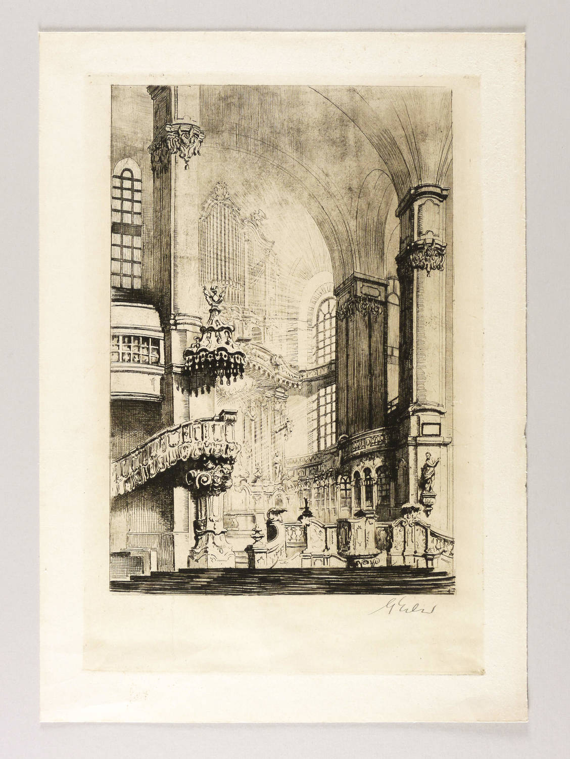 Rechts unten in Bleistift signiert: ″G Erler″. – Papier leicht gegilbt und in den Rändern leicht knickspurig. Insgesamt guter Zustand.
