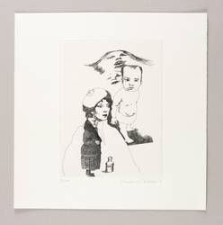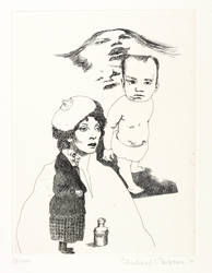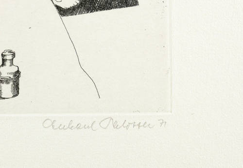 1971. Radierung / Strichätzung, in Schwarz, auf hellchamois Velinkarton. – Von Eberhard Schlotter. – Exemplar Auflage Nr. 28/100. – 19,7 x 14,8 cm (Darstellung / Platte), 28 x 28 cm (Blatt).