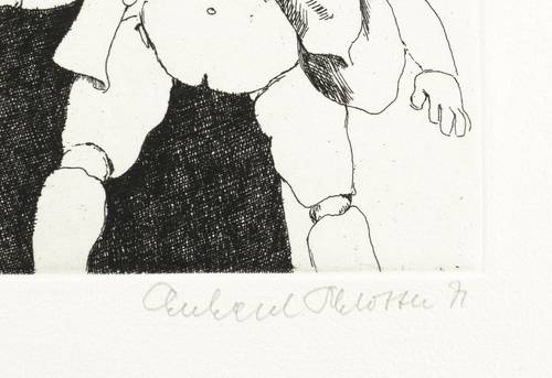 1971. Radierung / Strichätzung, in Schwarz, auf hellchamois Velinkarton. – Von Eberhard Schlotter. – Exemplar Auflage Nr. 28/100. – 19,7 x 14,8 cm (Darstellung / Platte), 28 x 28 cm (Blatt).