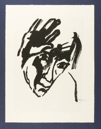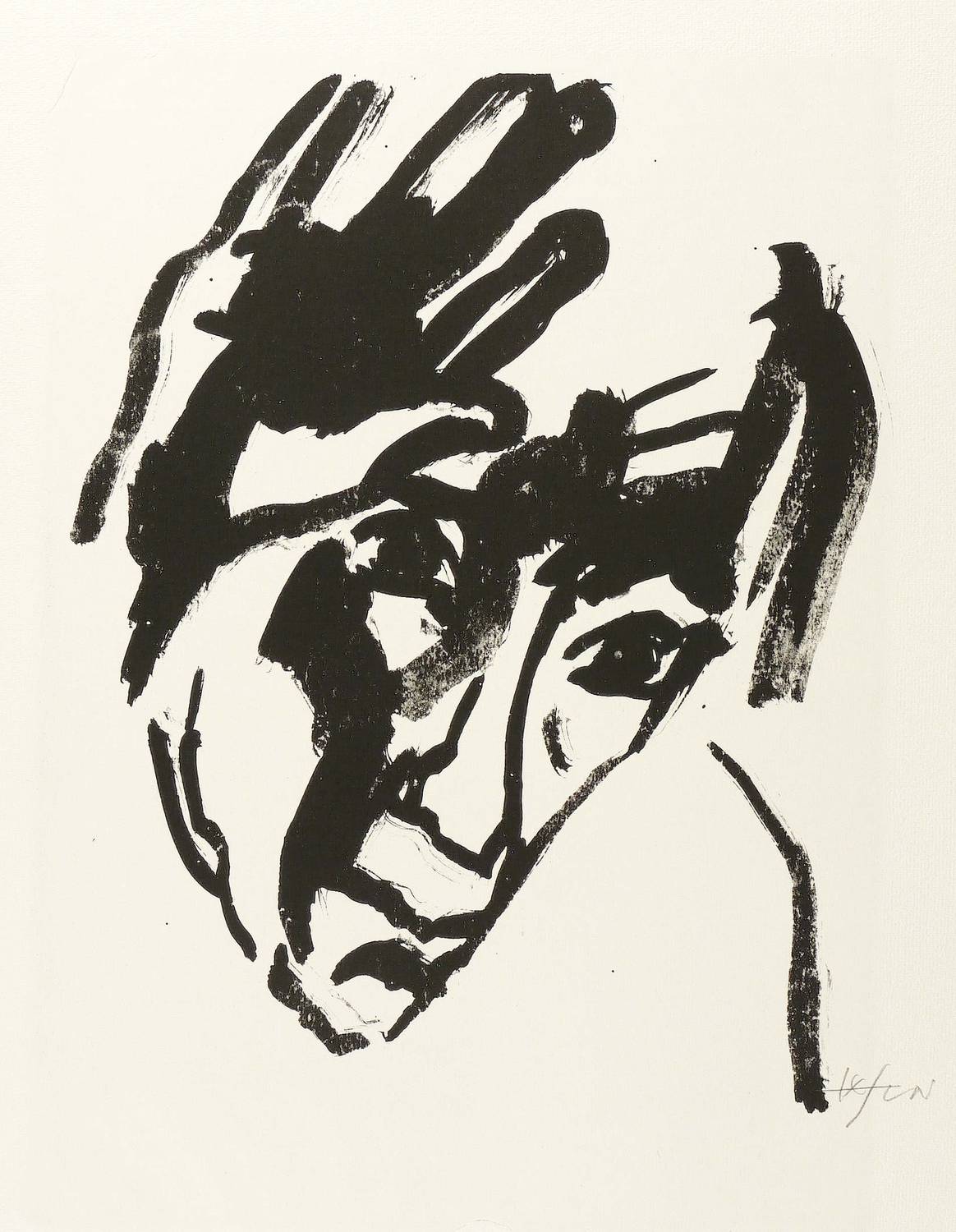 Um 1980. Lithografie / Pinsellithografie, in Schwarz, auf leichtem hellgelbem Hahnemühle. – Originale Künstlergrafik, von Heinz Tetzner. – Druckerexemplar. – 37,0 x 28,8 cm (Darstellung / Druckbild), 42,5 x 30,5 cm (Stein), 52 x 40 cm (Blatt).