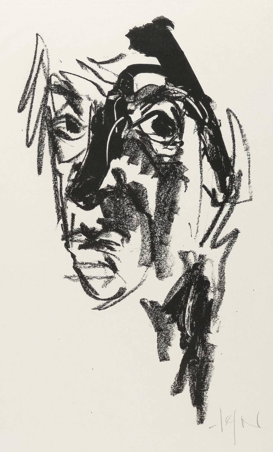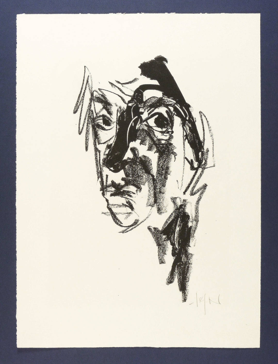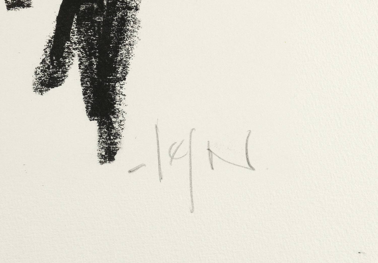 1980. Lithografie / Pinsellithografie, in Schwarz, auf hellgelbem Hahnemühle-Bütten. – Originale Künstlergrafik, von Heinz Tetzner. – 40,0 x 23,0 cm (Darstellung / Druckbild), 54 x 39 cm (Blatt).