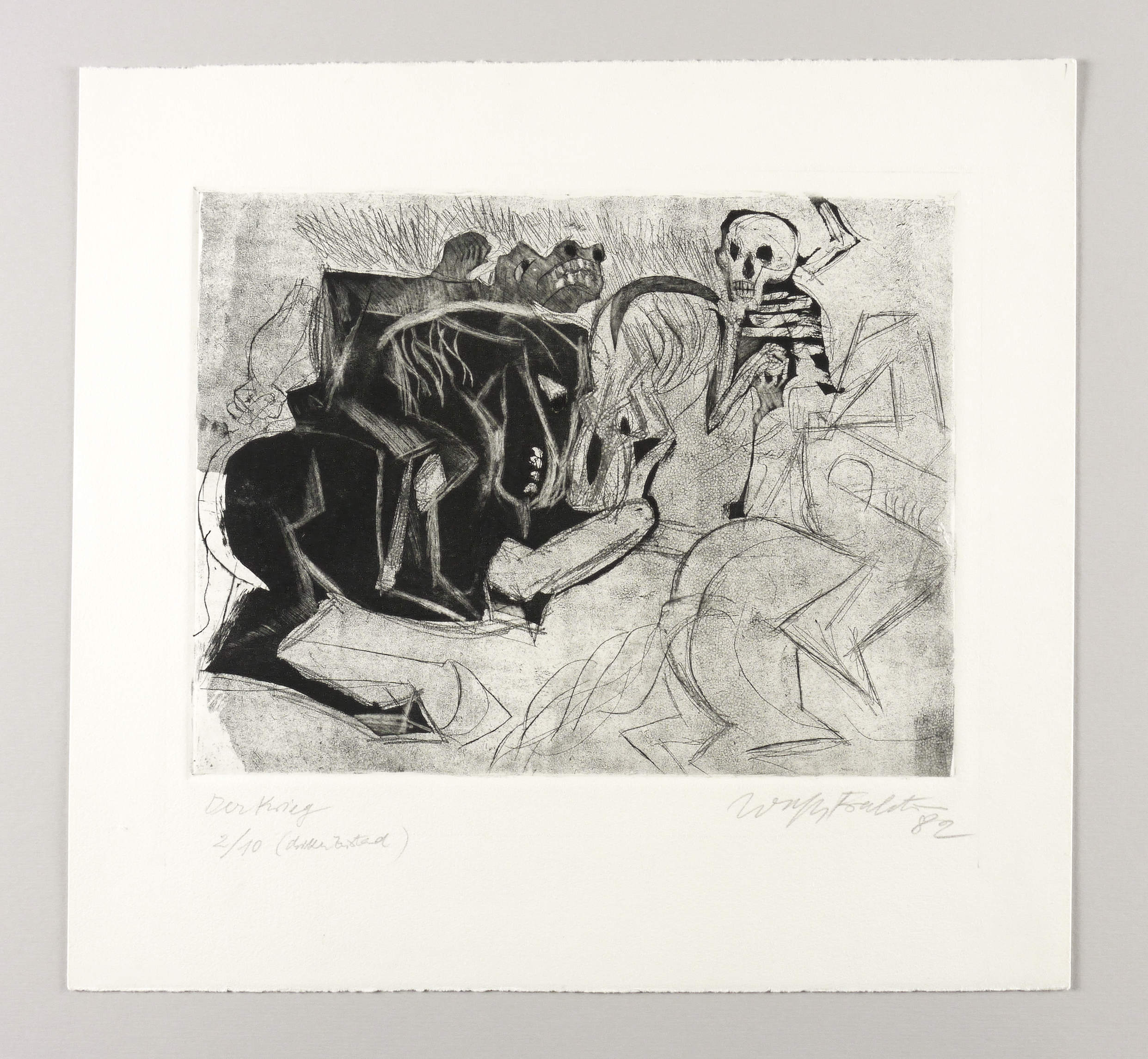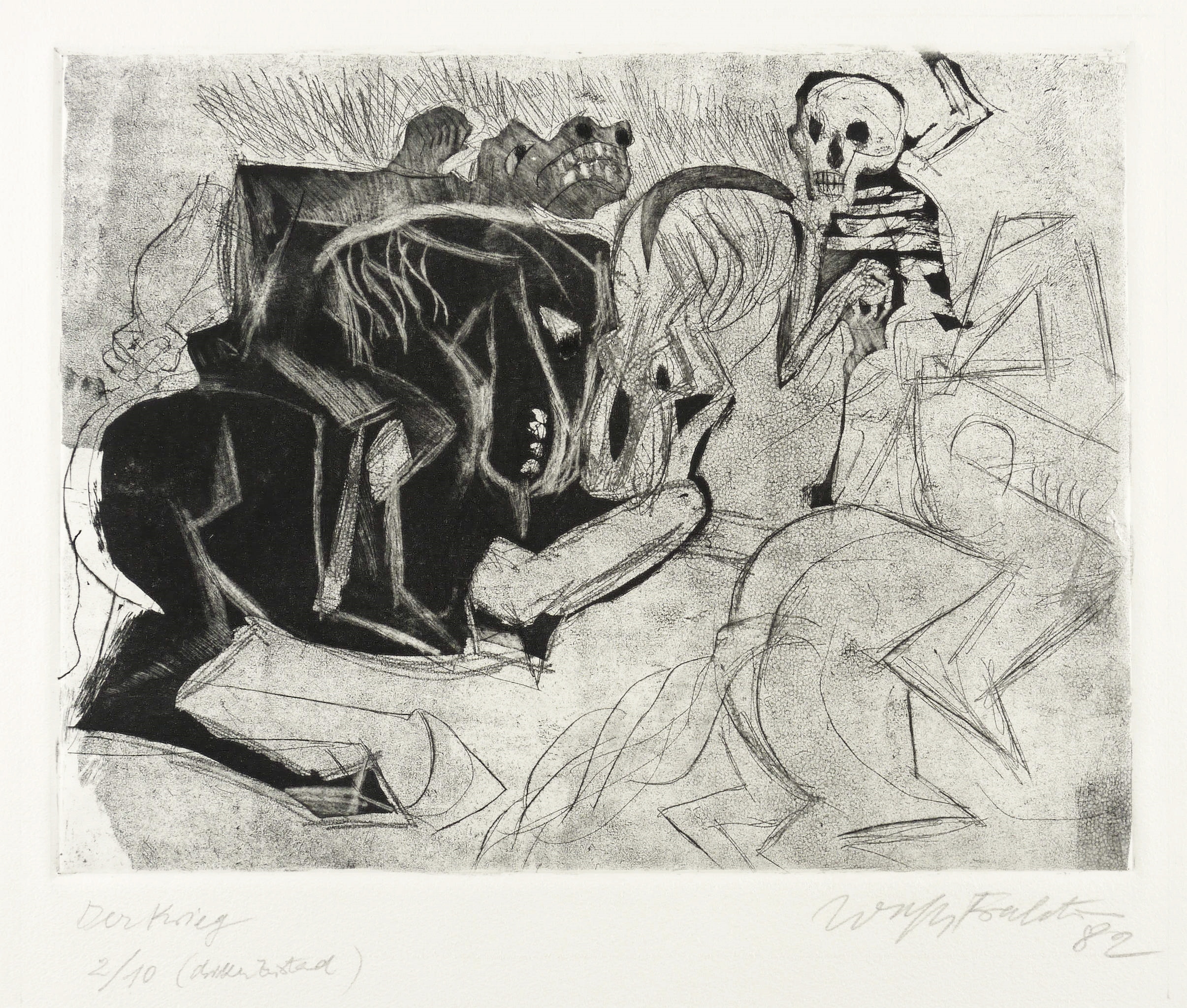 1982. Radierung / Aquatinta & Kaltnadel, in Schwarz, auf hellgelbem Velin. – Originale Künstlergrafik, von Wolfgang Frankenstein. – Auflage Exemplar Nr. 2/10. – 24,7 x 32,2 cm (Darstellung / Platte), 39 x 42 cm (Blatt).