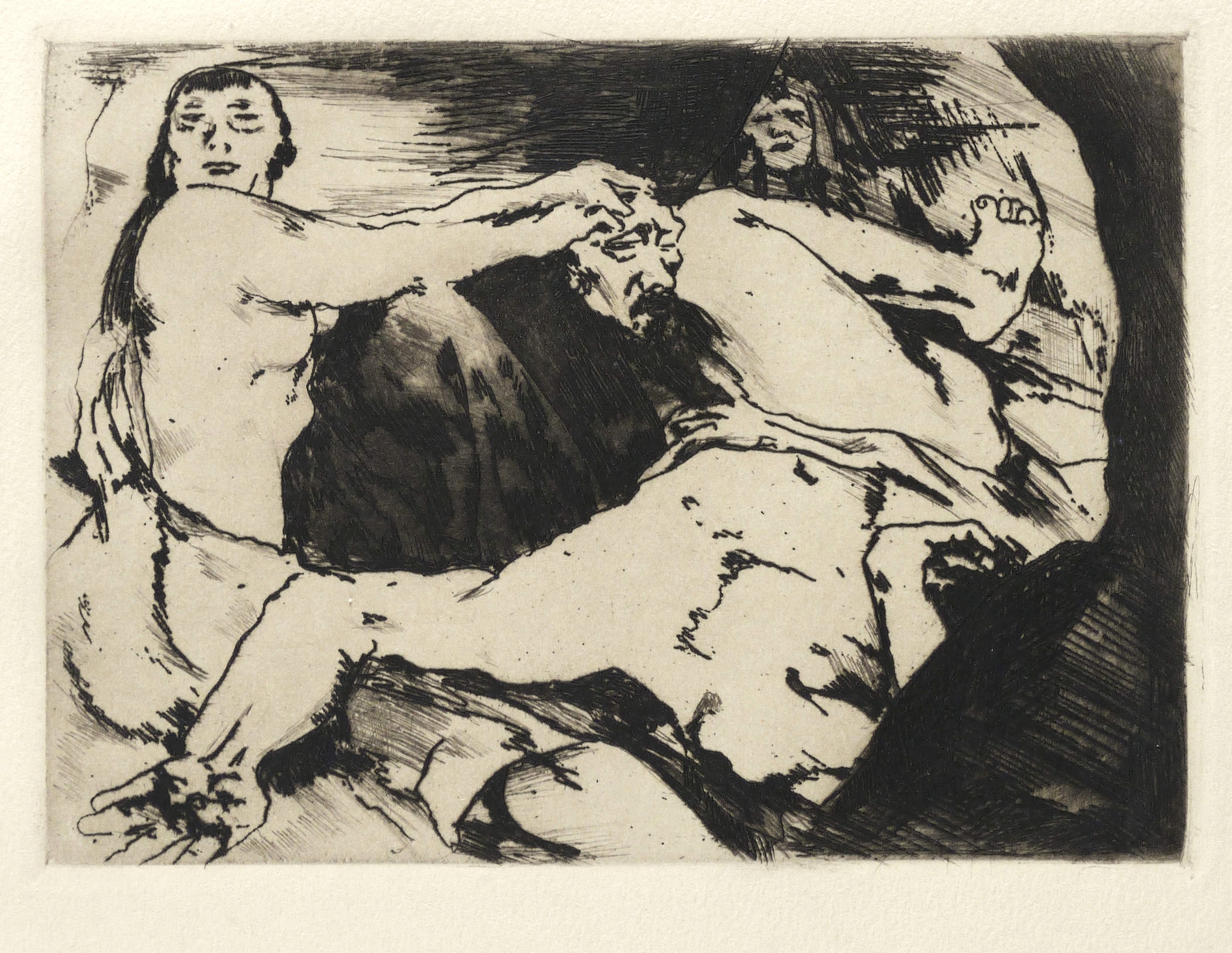 1915. Radierung / Strichätzung & Kaltnadel, in Schwarz, auf gelbem Kupferdruckpapier. – Originale Künstlergrafik, von Willy Jaeckel. – 12,4 x 17,2 cm (Darstellung / Platte), 31 x 23 cm (Blatt).
