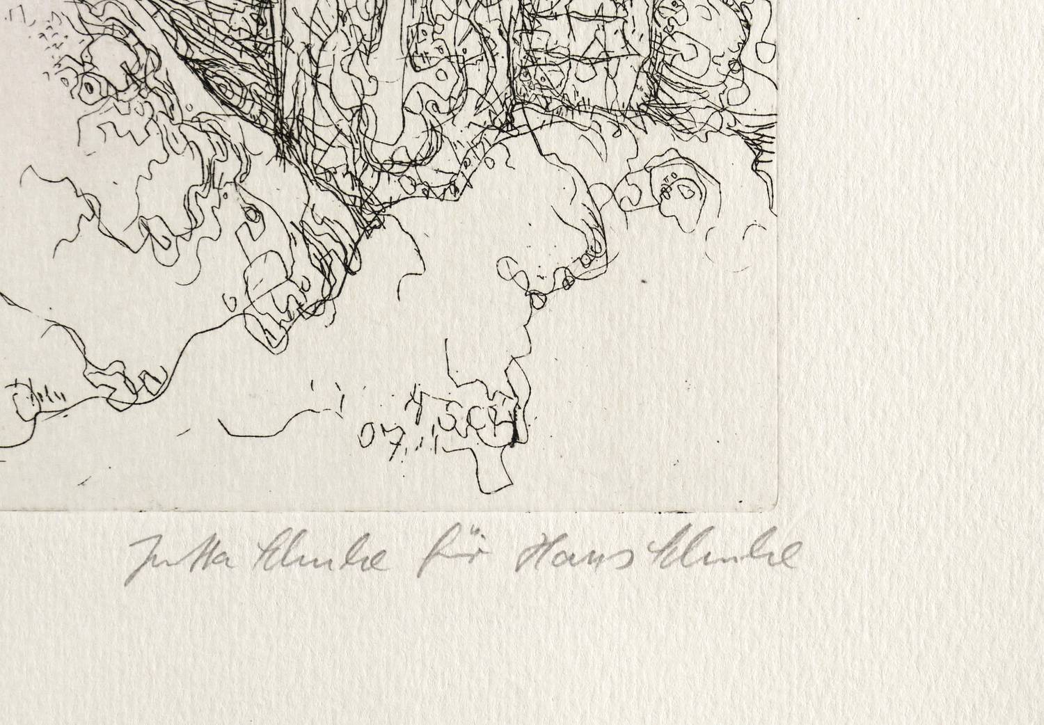In der Platte rechts unten Signatur und Jahr: ″H. Sch. 67″. Darunter in Bleistift von Jutta Schulze signiert. Links Titel, mittig Auflagenbezeichnung. – Minimal fingerspurig. Insgesamt gut erhalten.