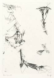 Thomas Ranft (*1945 Königsee/Thüringen, lebt und arbeitet in Chemnitz). Deutscher Grafiker. Nach einer Tätigkeit als Baumschulgärtner in Weimar und Markkleeberg studierte er von 1967 bis 1972 an der Hochschule für Grafik und Buchkunst Leipzig. 1972 zog er nach Karl-Marx-Stadt (heute Chemnitz). Auf seine Initiative hin gründeten er, Carlfriedrich Claus, Michael Morgner und Dagmar Ranft-Schinke die Künstlergruppe Clara Mosch (1977-1982) in Adelsberg, einem Stadtteil von Chemnitz. 1985 begegnete er erstmals Ernst Jandl. Später illustrierte er Jandls Werk "der beschriftete sessel". Von 1986 bis 1989 lehrte er an der Fachschule für angewandte Kunst in Schneeberg. Seit 1993 ist er Mitglied der Freien Akademie der Künste zu Leipzig. 2003 erhielt er den Hans-Theo-Richter-Preis der Sächsischen Akademie der Künste.