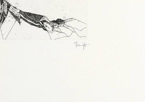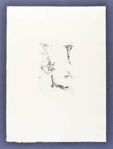 1991. Radierung / Strichätzung, in Schwarz, auf schwerem hellgelbem Bütten. – Originale Künstlergrafik, von Thomas Ranft. – 19,8 x 13,9 cm (Darstellung / Platte), 53 x 40 cm (Blatt).
