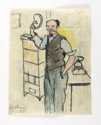 1935. Zeichnung / Feder, in schwarzer Tusche, über Bleistift, aquarelliert, auf Transparentpapier. – Originale Künstlergrafik, von Wilhelm Engelmann. – Unikat. – 15,0 x 11,5 cm (Darstellung / Blatt).