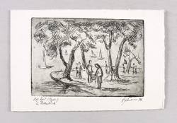 1976. Radierung / Strichätzung, in Schwarz, auf gelblichem Velinkarton. – Originale Künstlergrafik, von Wilhelm Engelmann. – Probedruck Nr. 2. – 8,9 x 12,8 cm (Darstellung / Platte), 12 x 18 cm (Blatt).
