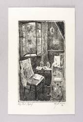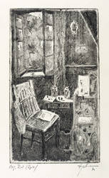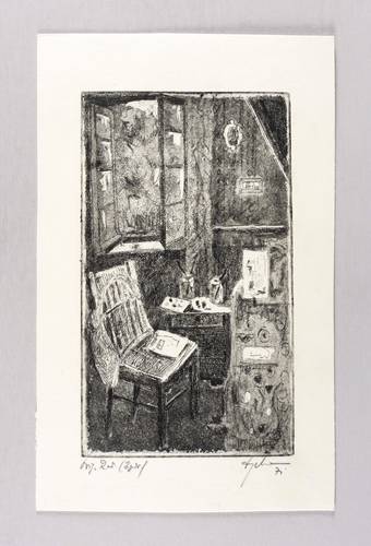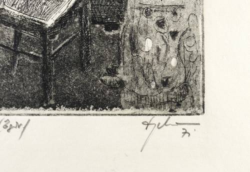 1971. Radierung / Strichätzung & Aquatinta, in Schwarz, auf hellchamois Velinkarton. – Originale Künstlergrafik, von Wilhelm Engelmann. – 20,8 x 12,0 cm (Darstellung / Platte), 27 x 17 cm (Blatt).