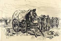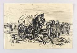 1940-1950. Zeichnung / Feder, in schwarzer & grauer Tusche, auf leichtem gelbem Velin. – Originale Künstlergrafik, von Katrine Harries. – Unikat. – 17,8 x 26,5 cm (Darstellung / Blatt).