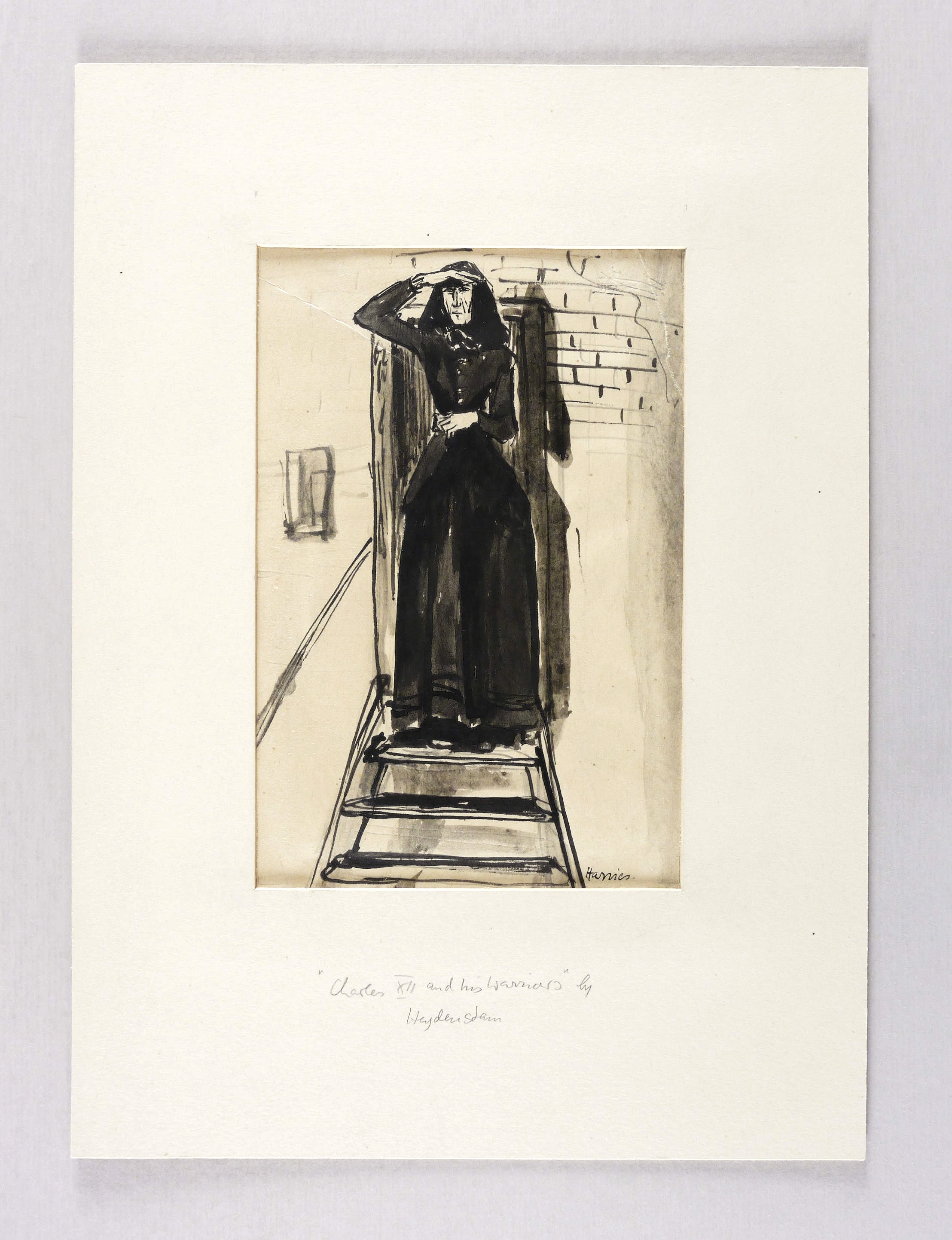 Rechts unten in schwarzer Feder signiert: ″Harries″. – Illustration zu ″Karolinerna″ des schwedischen Schriftstellers Verner Heidenstam (1897/98, ins Deutsche übertragen: Karl XII. und seine Krieger). – Original hinter Passepartout montiert. Sehr guter Zustand.