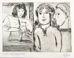 1967. Radierung / Kaltnadel, in Schwarz, auf hartem hellchamois Weißenborn. – Originale Künstlergrafik, von Charlotte Elfriede Pauly. – Künstlerexemplar (e.a.). – 20,5 x 28,4 cm (Darstellung / Platte), 24 x 32 cm (Blatt).