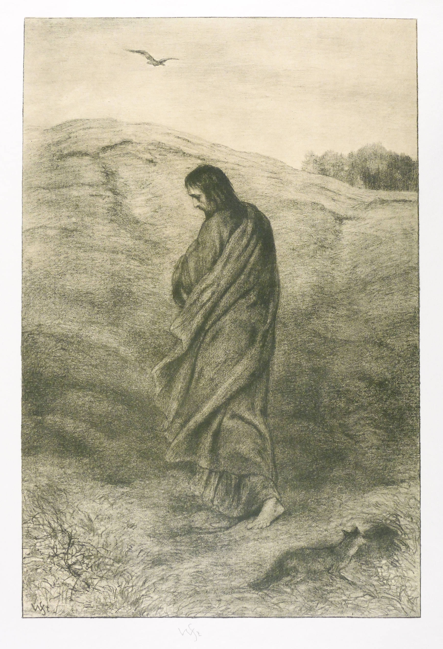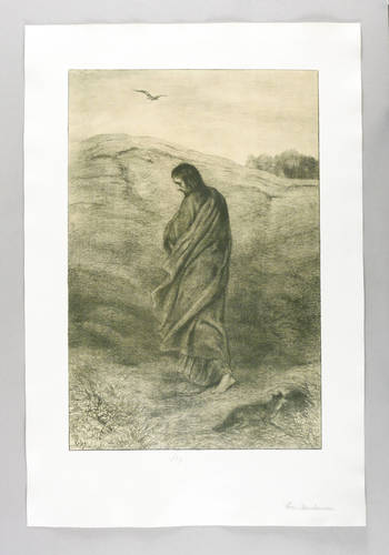 Um 1890. Farblithografie / Federlithografie, in Ocker & Schwarz, auf weißlichem Velinkarton. – Originale Künstlergrafik, von Wilhelm Steinhausen. – 54,8 x 36,4 cm (Darstellung / Druckbild), 73 x 49 cm (Blatt).