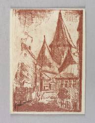 Um 1950. Lithografie / Kreidelithografie, in Braun, auf gelblichem Karton. – Originale Künstlergrafik, von Wilhelm Engelmann. – 14,0 x 10,0 cm (Darstellung / Blatt).