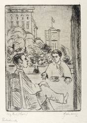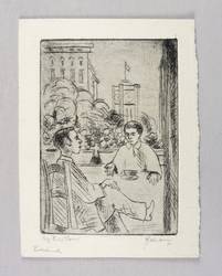 1970. Radierung / Strichätzung, in Schwarz, auf gelblichem Velinkarton. – Originale Künstlergrafik, von Wilhelm Engelmann. – Probedruck. – 12,7 x 8,9 cm (Darstellung / Platte), 16 x 12 cm (Blatt).