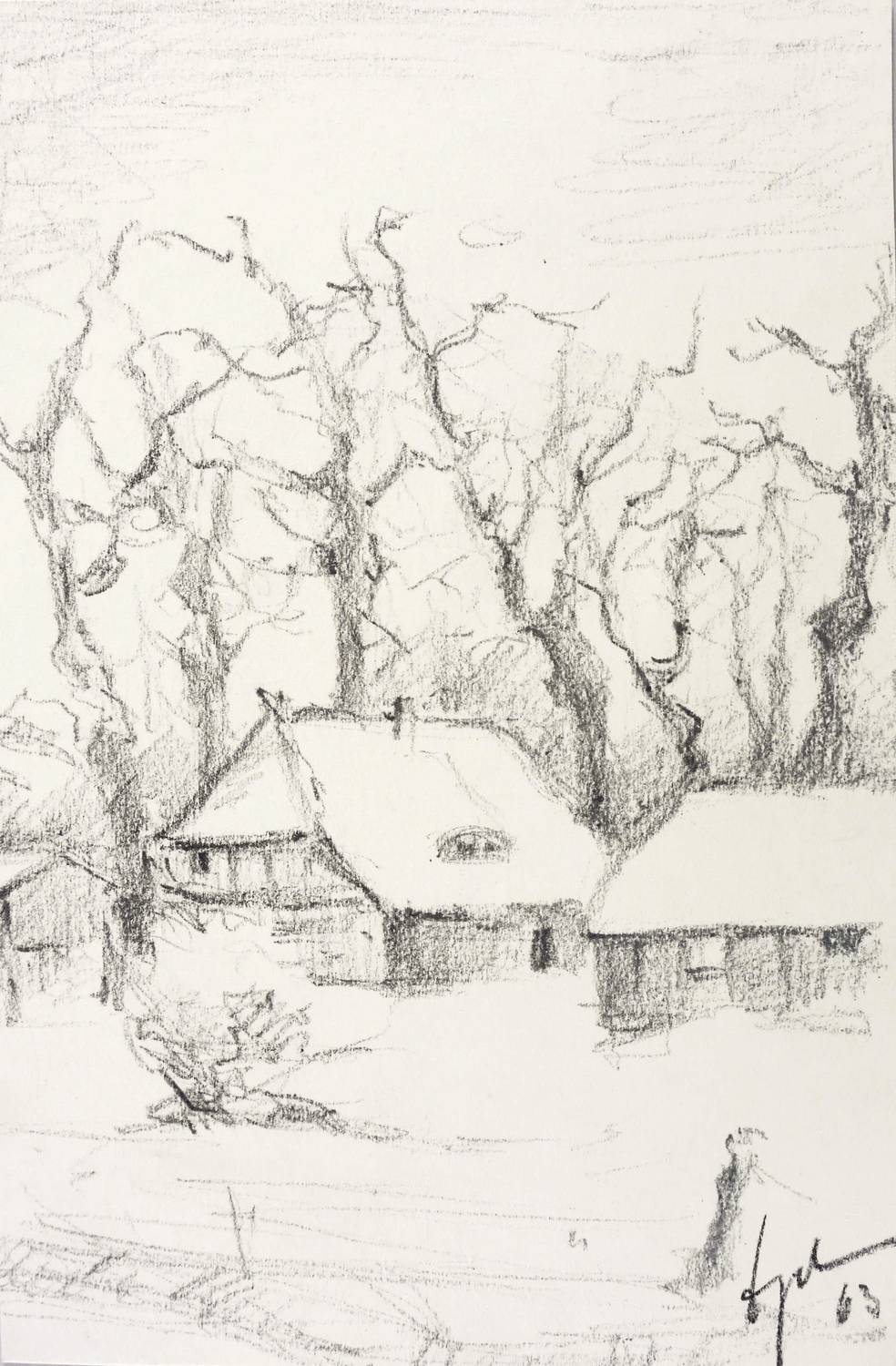 1963. Zeichnung / Graphit, auf hellem Velinkarton. – Originale Künstlergrafik, von Wilhelm Engelmann. – Unikat. – 22,5 x 14,8 cm (Darstellung / Blatt).
