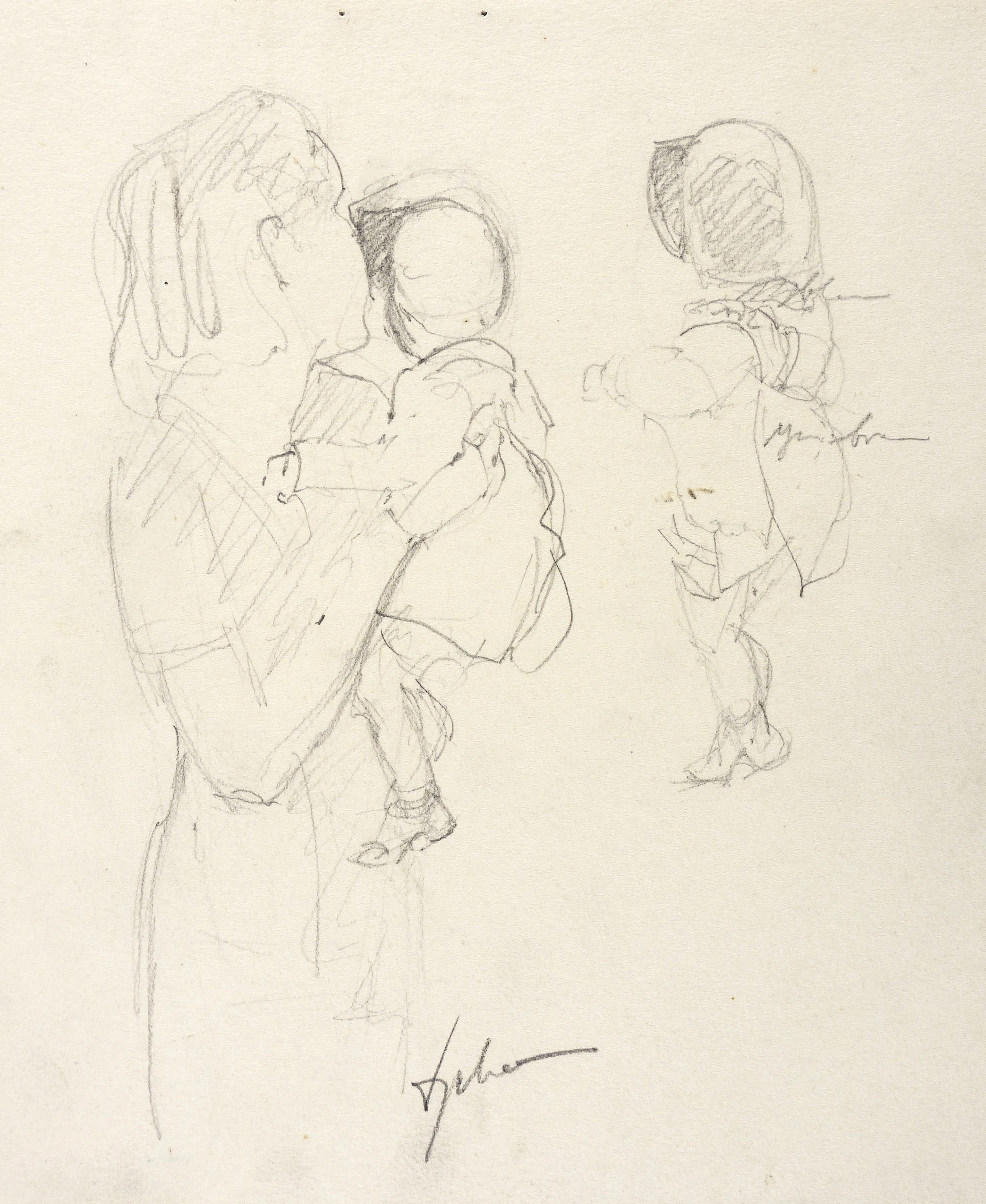 1960-1970. Zeichnung / Bleistift, auf chamois Velinkarton. – Originale Künstlergrafik, von Wilhelm Engelmann. – Unikat. – 21,8 x 20,0 cm (Darstellung / Blatt).