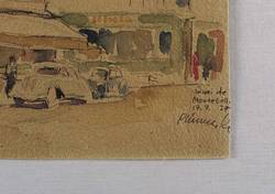 1937. Mischtechnik / Aquarell & Tusche, auf gelbem Aquarellkarton. – Originale Künstlergrafik, von Französisch (20. Jh.). – Unikat. – 28,3 x 20,2 cm (Darstellung / Blatt).