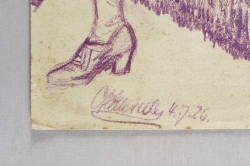 Links unten in Farbkreide signiert und datiert: ″OSchmieder 4.J. 26.″ – Papier geringfügig fleckig. Mäßig guter Zustand.