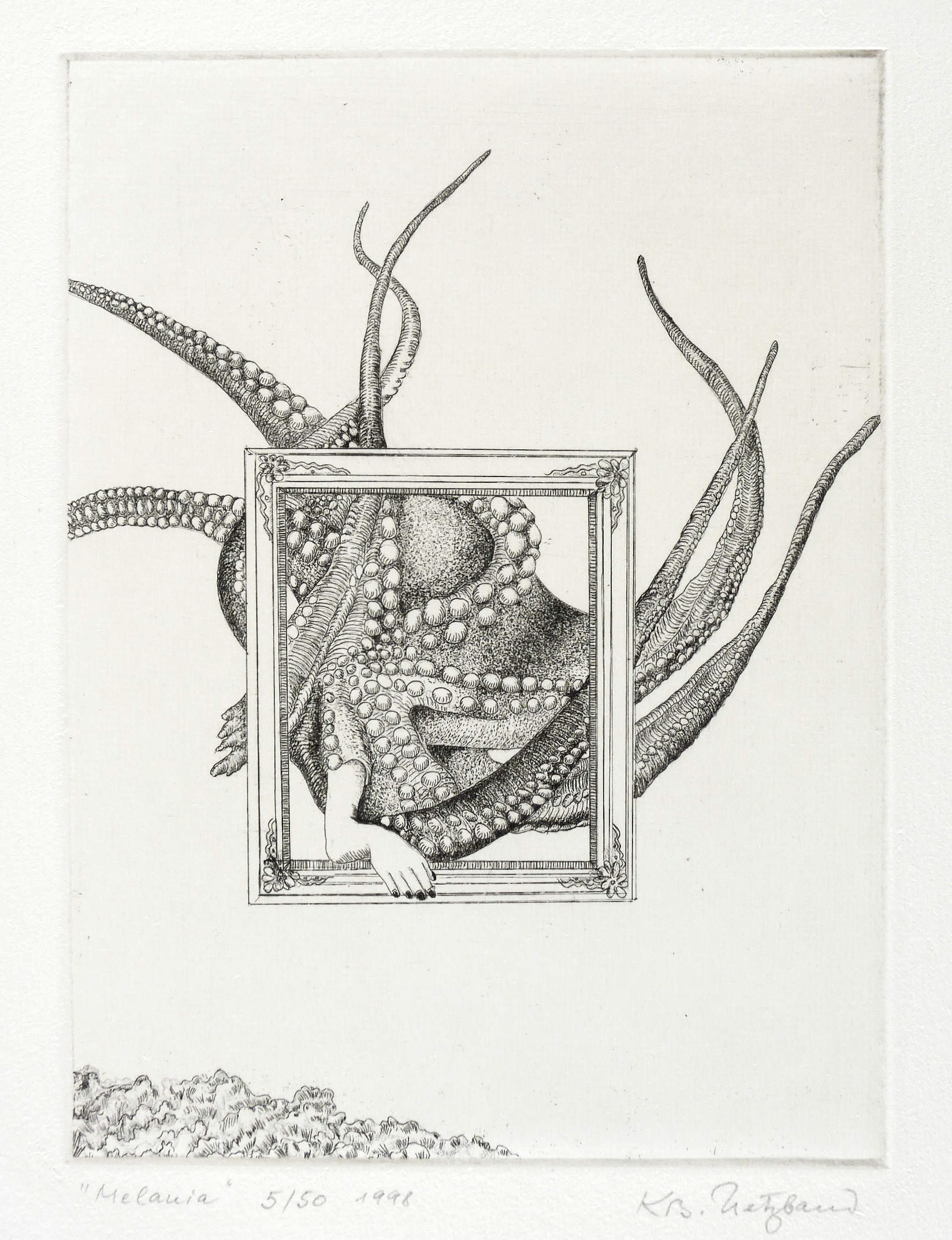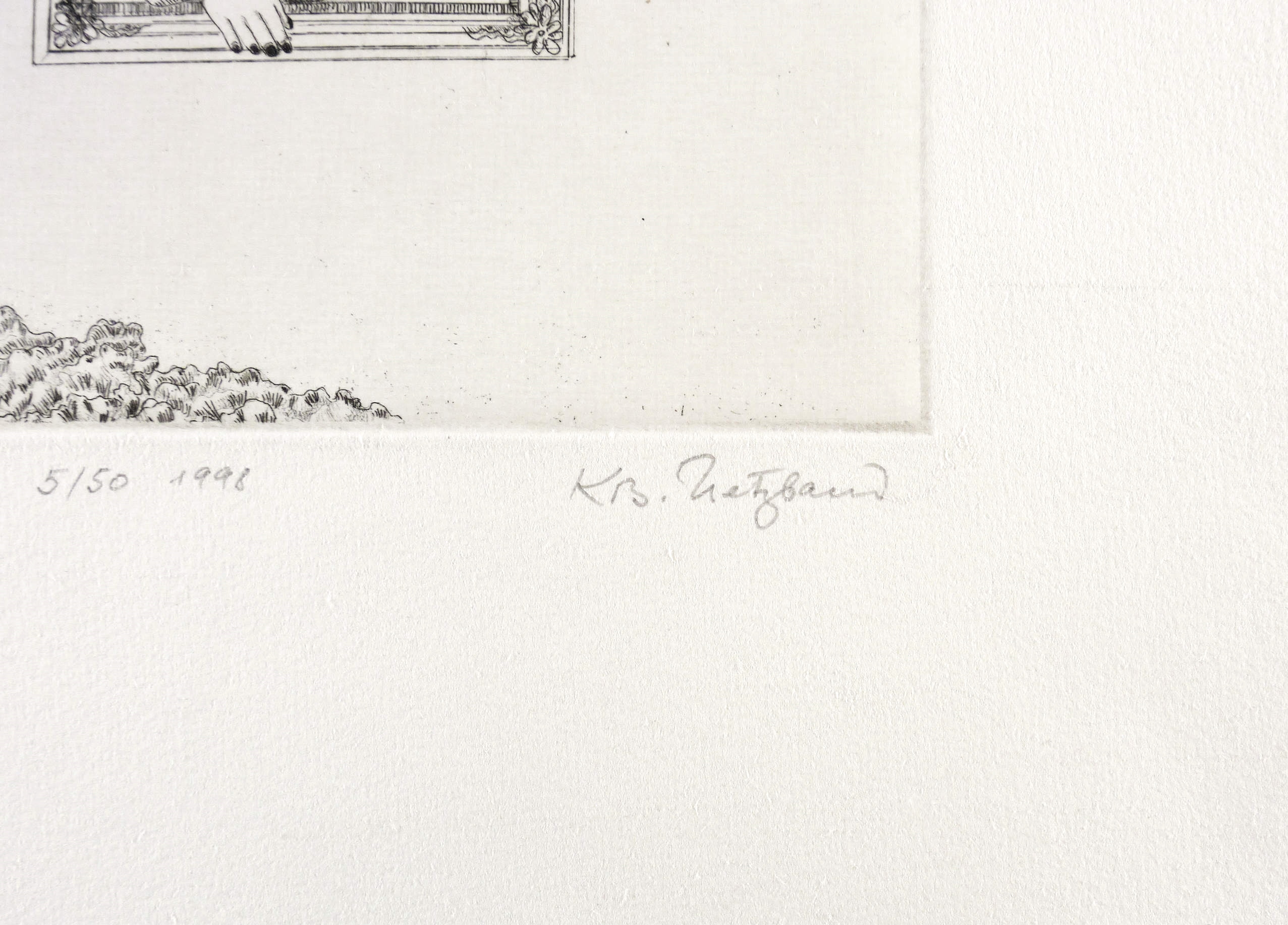 1998. Radierung / Strichätzung, in Schwarz, auf hellchamois Velin. – Originale Künstlergrafik, von Karl-Bernhard Netzband. – Auflage Exemplar Nr. 5/50. – 19,8 x 14,5 cm (Darstellung / Platte), 40 x 28 cm (Blatt).