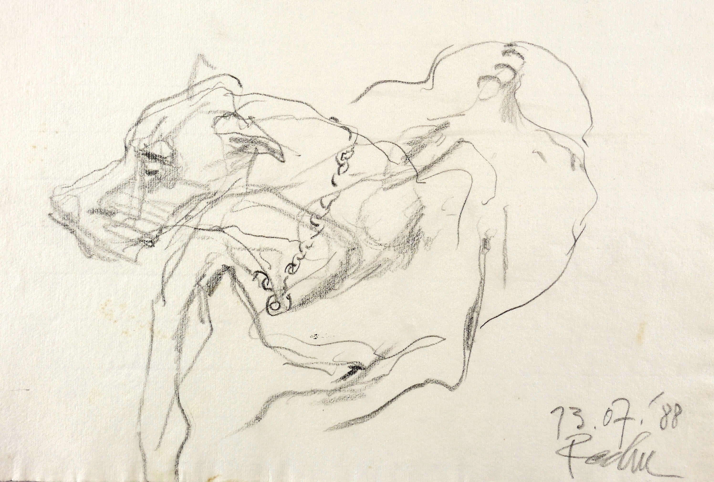 1988. Zeichnung / Graphitzeichnung, auf rauem hellem Losin-Bütten. – Von Günther Rechn. – 29,5 x 40,5 cm (Darstellung / Blatt).