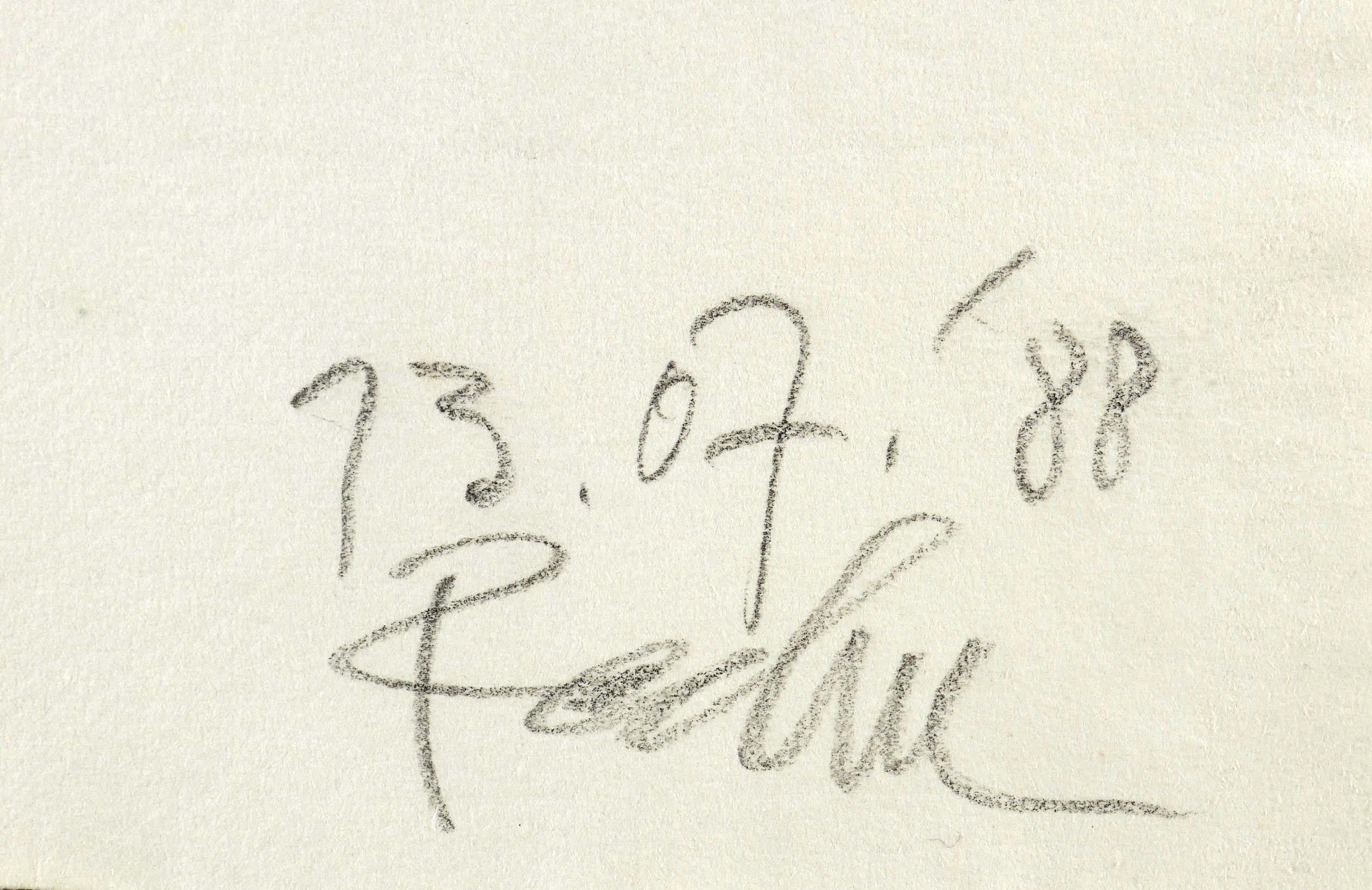 Rechts unten in Bleistift signiert und datiert: ″13.07.88 Rechn″. Wasserzeichen der Papiermühle. – Minimale Lagerspuren. Guter Zustand.