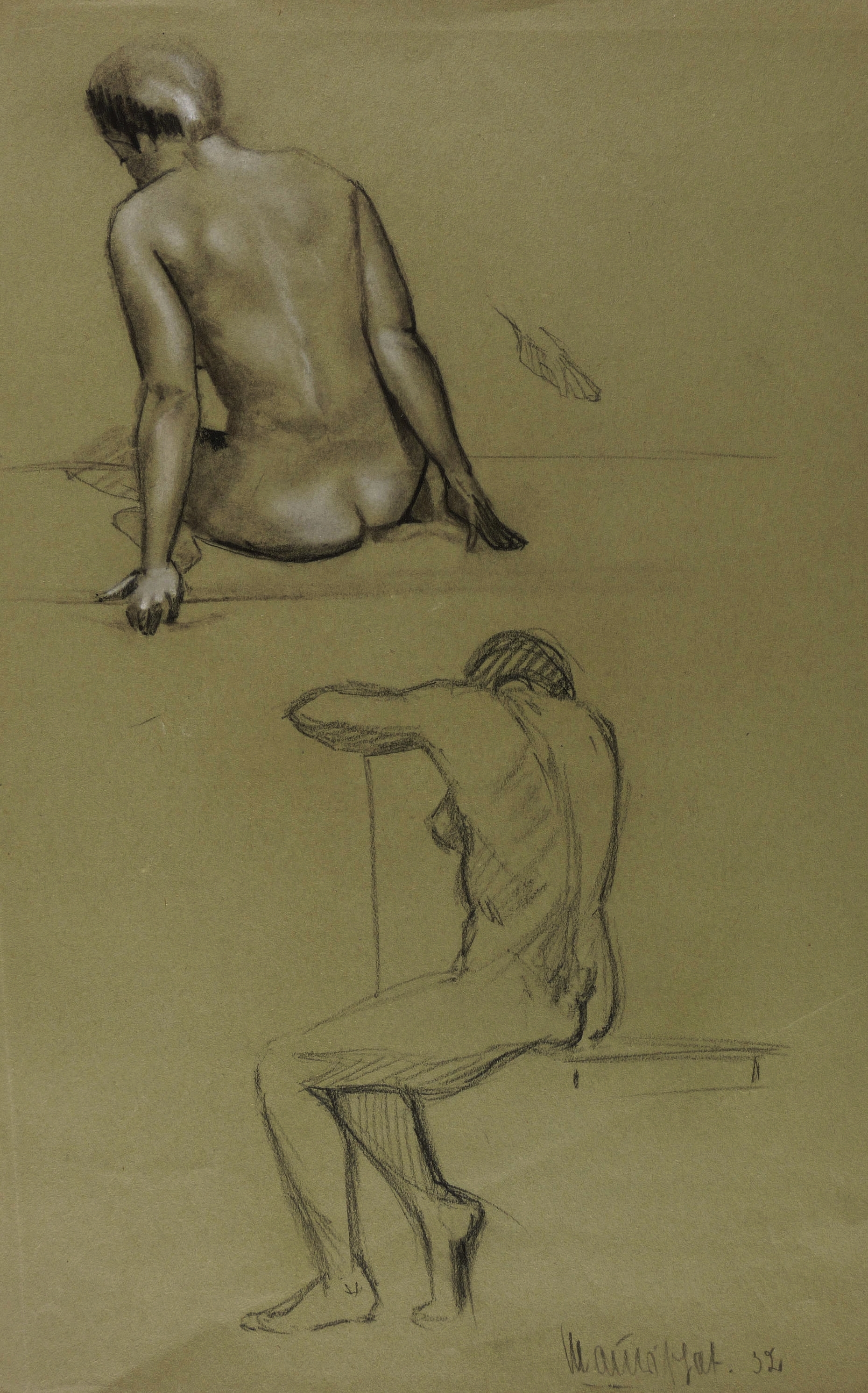 Rechts unten in schwarzer Kreide signiert und datiert: ″Maurischat 32″. – Leichte Atelierspuren. Wenige ausgelegene Knickfalten. Guter Zustand.