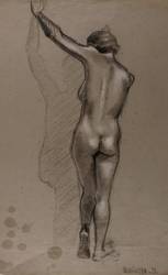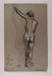 1932. Zeichnung / Kreidezeichnung, partiell gewischt & gehöht, auf festem dunkelgrauem Velin. – Originale Künstlergrafik, von Elsa Maria Felsko-Schülke. – Unikat. – 50,3 x 32,6 cm (Darstellung / Blatt).