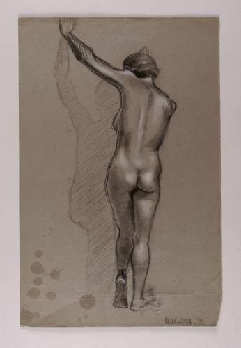 Rechts unten in schwarzer Kreide signiert und datiert: ″Maurischat 32″. – Starke Atelierspuren, unten vertikale Knickfalte und links Flecken. Mangelhafter Zustand.