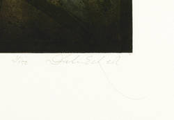1980-1989. Farbradierung / Aquatinta, in Blaugrün & Schwarz, auf chamois Velinkarton. – Originale Künstlergrafik, von Dieter Eckert. – Auflage Exemplar Nr. 2/150. – 20,8 x 20,0 cm (Darstellung / Platte), 48 x 40 cm (Blatt).