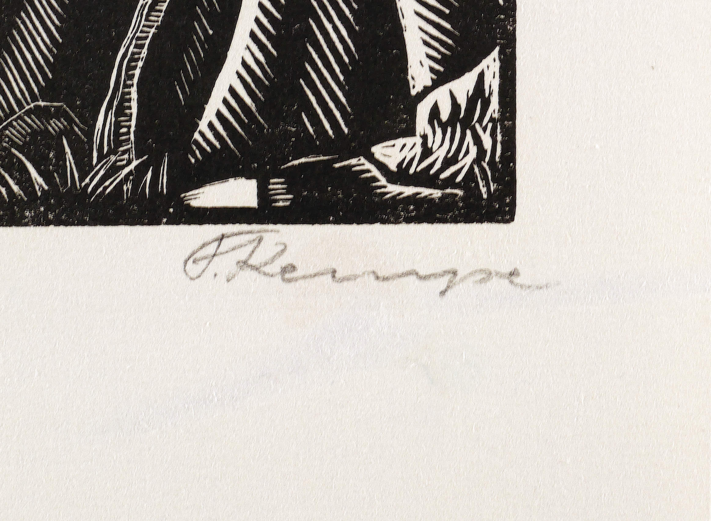 Rechts unten in Bleistift signiert. Im Druckstock links unten Monogramm. – Rückseitig Kleberest. Papier dort etwas ausgedünnt. Mangelhafter Zustand.