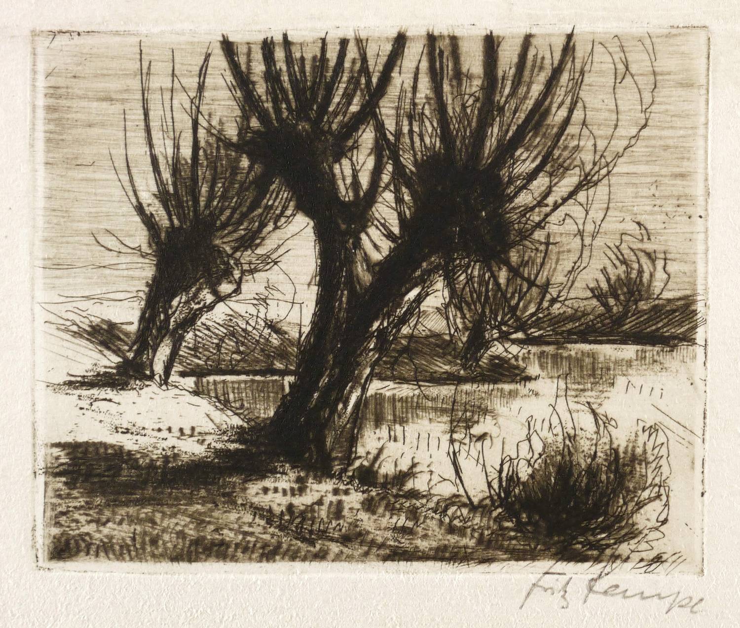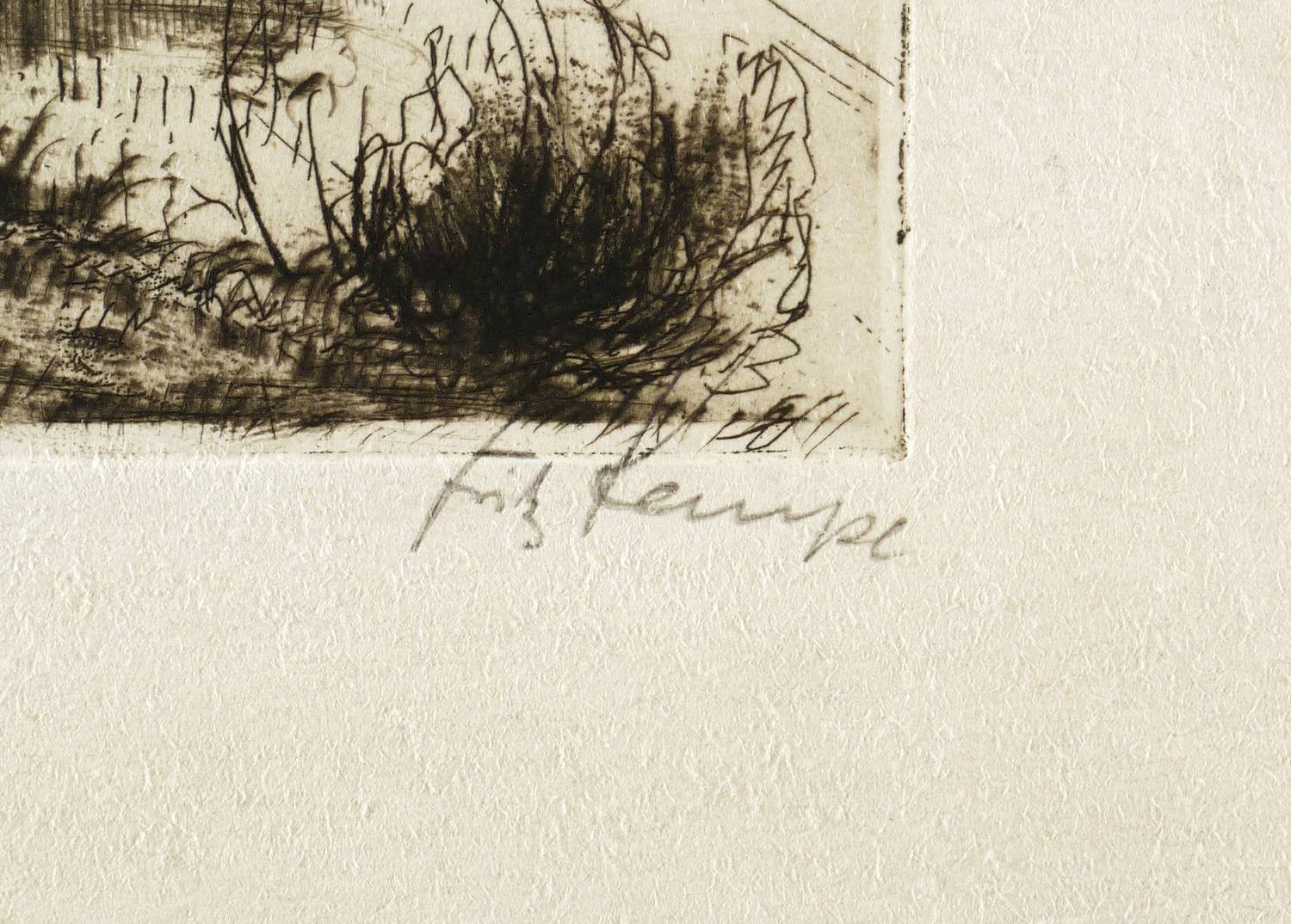 Rechts unten in Bleistift signiert: ″Fritz Kempe″. – Aus dem Leipziger Frühwerk des Künstlers. - Selten. – Ältere Knickfalte auf Höhe der oberen Plattenkante, restauriert und geglättet. Mäßig guter Zustand.