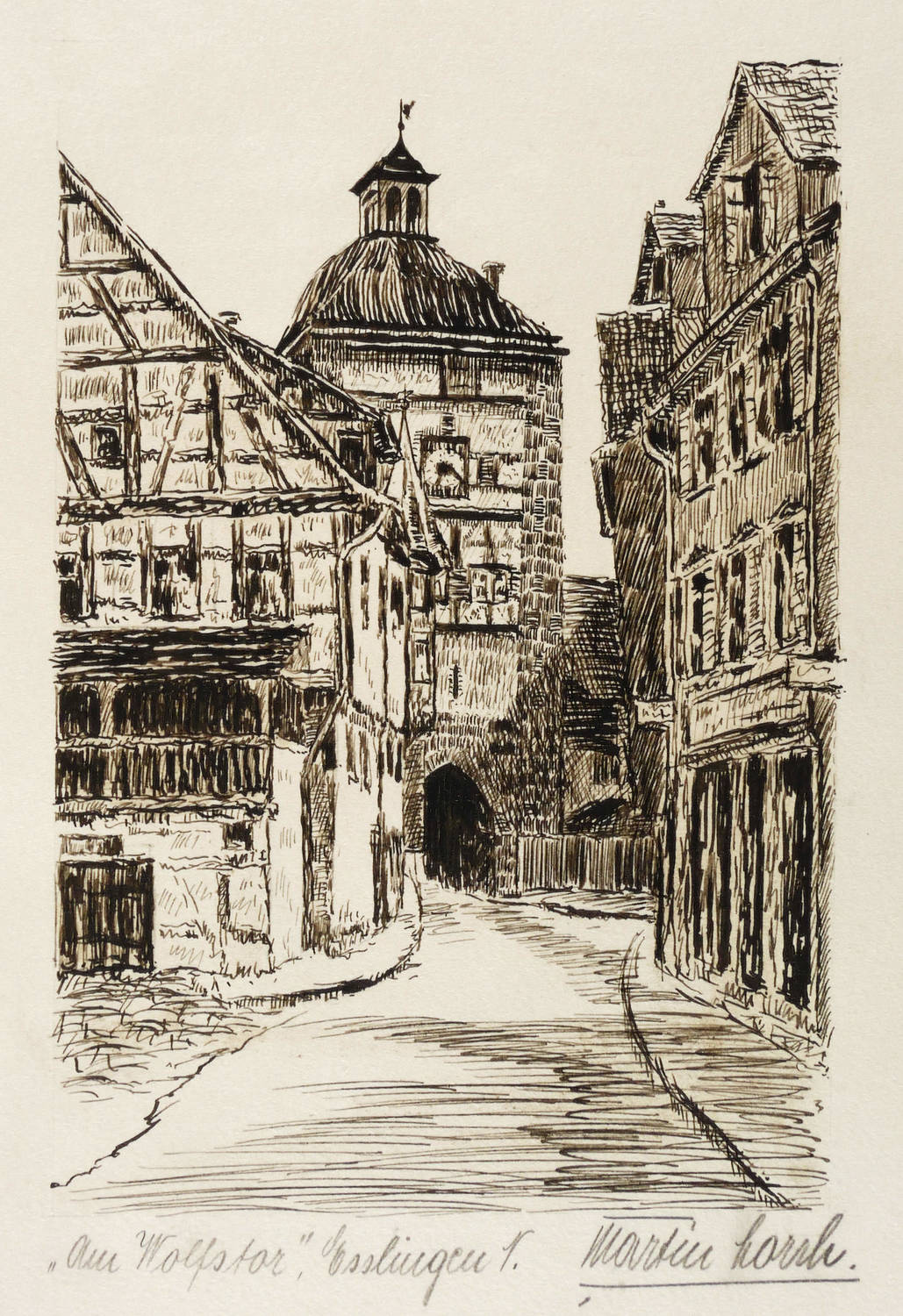 Rechts unten in Bleistift signiert und datiert: ″Martin Horch″. Links Titel: ″Am Wolfstor. Esslingen N.″ – Sehr guter Zustand.