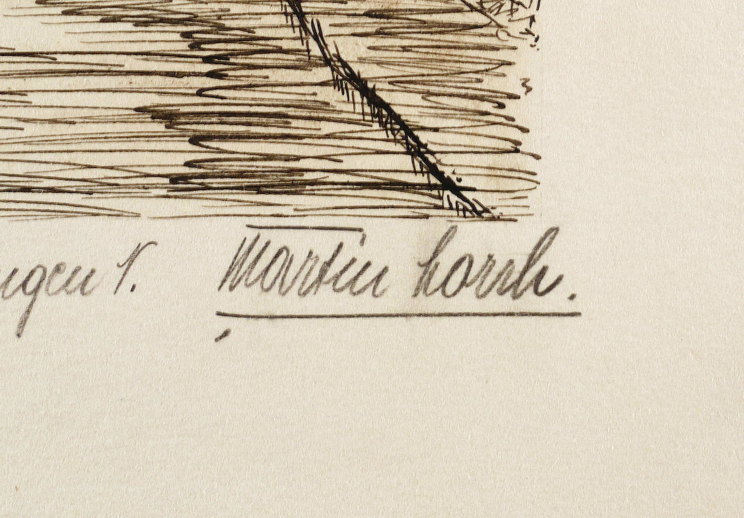 1920-1930. Radierung / Strichätzung, in Schwarz, auf hellgelbem Kupferdruckkarton. – Von Deutsch (20. Jh.). – 18,0 x 12,1 cm (Darstellung / Platte), 28 x 21 cm (Blatt).
