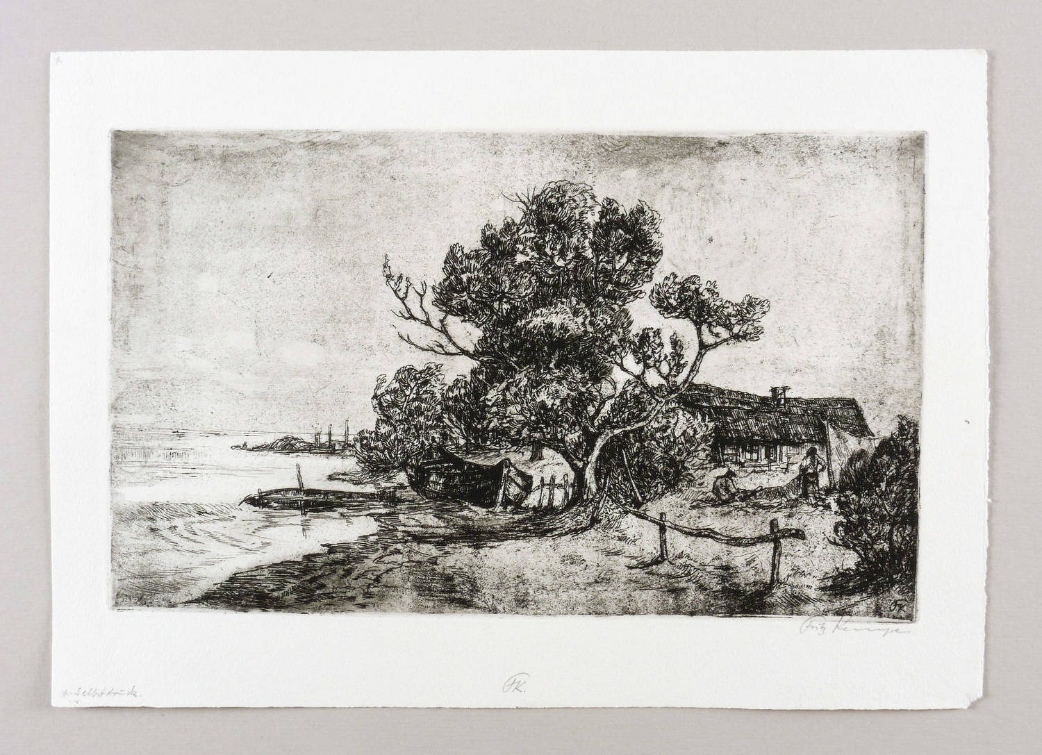Rechts unten in Bleistift signiert: ″Fritz Kempe″. Am Blattrand unten monogrammiert: ″FK″. In der linken unteren Blattecke bezeichnet: ″Selbstdruck″. In der Platte rechts unten Monogramm. – Tadellos erhalten. Sehr guter Zustand.