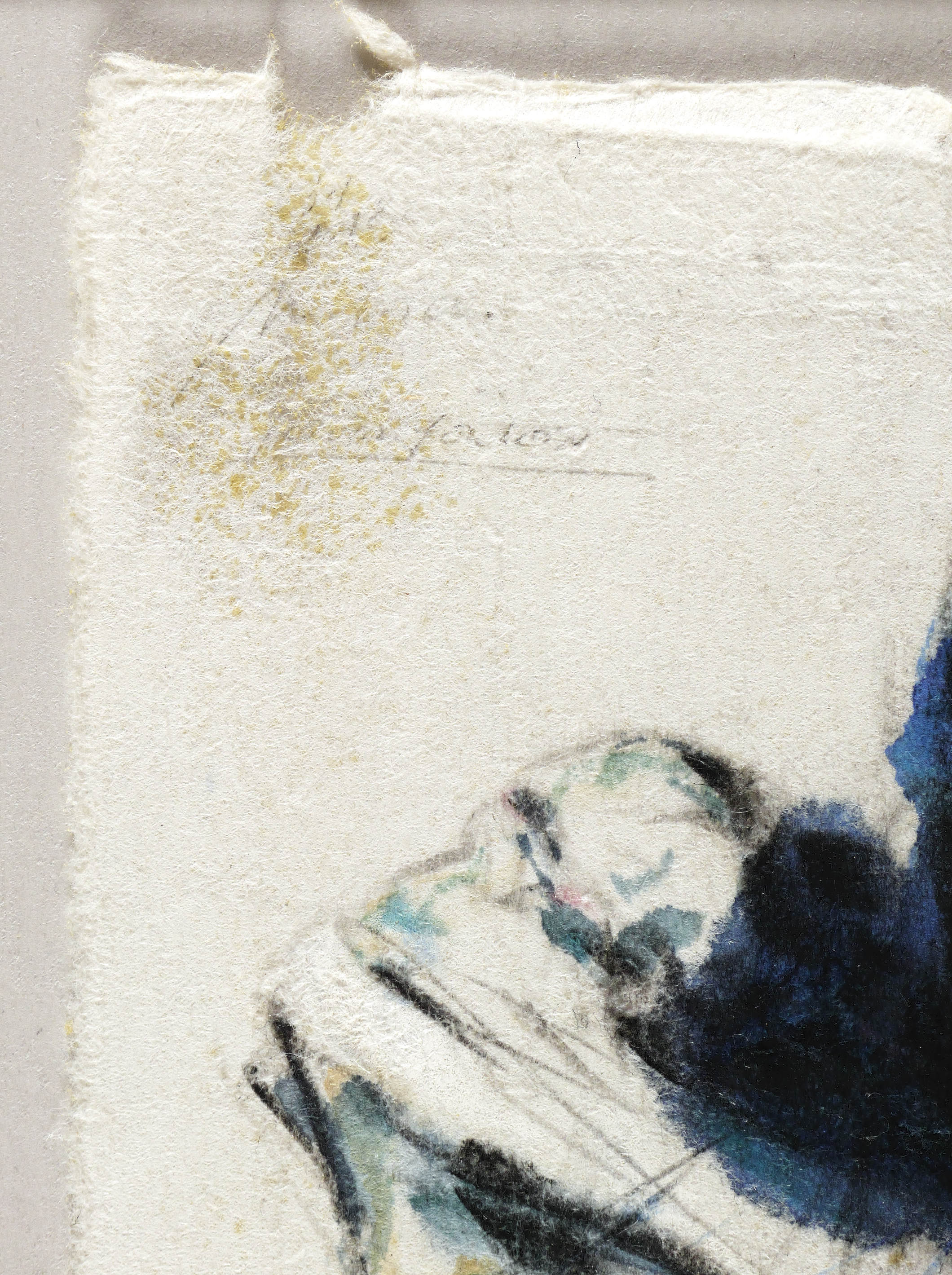 Links oben in Bleistift signiert und bezeichnet. – Der Blattrand oben etwas mangelhaft, kleine Fehlstelle, Randriss und Knickspuren. Insgesamt mangelhafter Zustand.