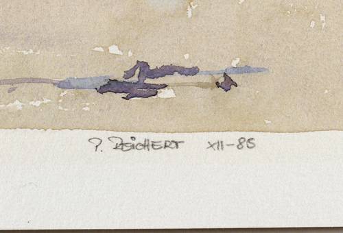 1985. Aquarell, auf weißem Aquarellkarton. – Originale Künstlergrafik, von Rainer Reichert. – Unikat. – 22,8 x 31,9 cm (Darstellung / Blatt).