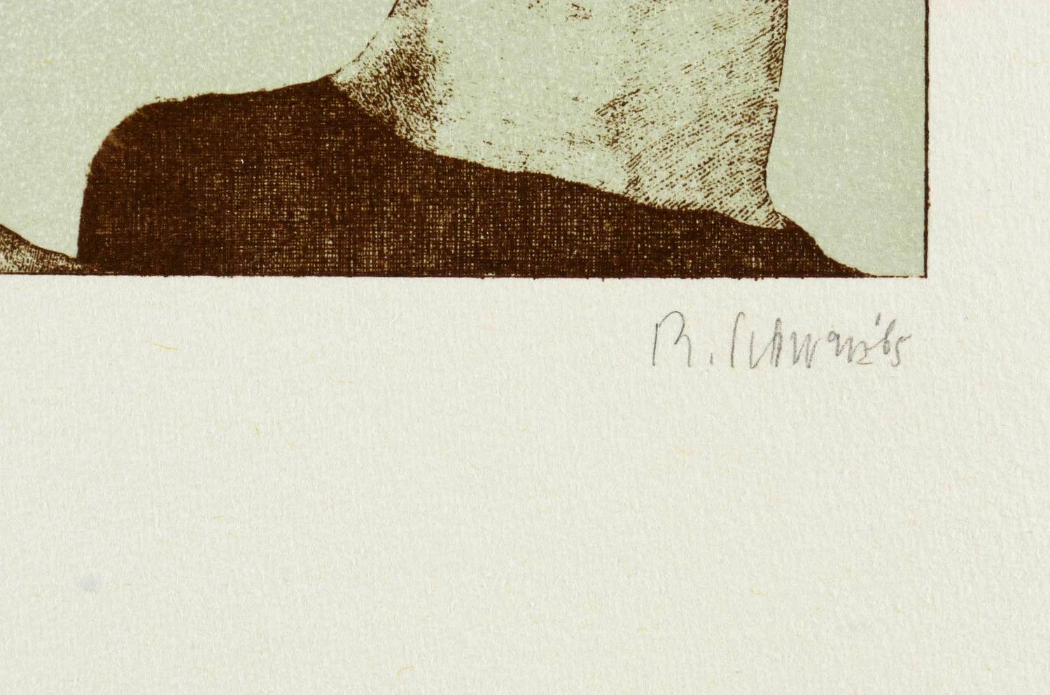 Reiner Schwarz (*1940 Hirschberg / heute Jelenia Góra, lebt und arbeitet in Berlin). Deutscher Maler und Grafiker. Nach der Flucht der Familie aus Schlesien Kindheit in einem Dorf bei Hannover. 1960-64 Studium an der Hochschule für bildende Künste Berlin, 1961-64 in der Malklasse von Mac Zimmermann (Staatsexamen). 1962 Studienreise nach Florenz und Venedig. 1964 Studienreise nach Rom. 1964 erste Einzelausstellung in Bremen. Ab 1964 langjährige Vertretung durch die Galerie Brusberg in Hannover und Berlin. 1965-68 Meisterschüler. Ab 1968 freischaffend als Maler und Grafiker tätig. 1972, '76 Medaillen der Internationalen Grafikbiennale Frechen. 1977 2. Senefelder-Preis für Lithografie Offenbach. 1979 Förderpreis zum Kulturpreis Schlesien des Landes Niedersachsen. 1996 Preis der 1. Internationalen Lithografie-Biennale der Ostseeländer Nidzica.