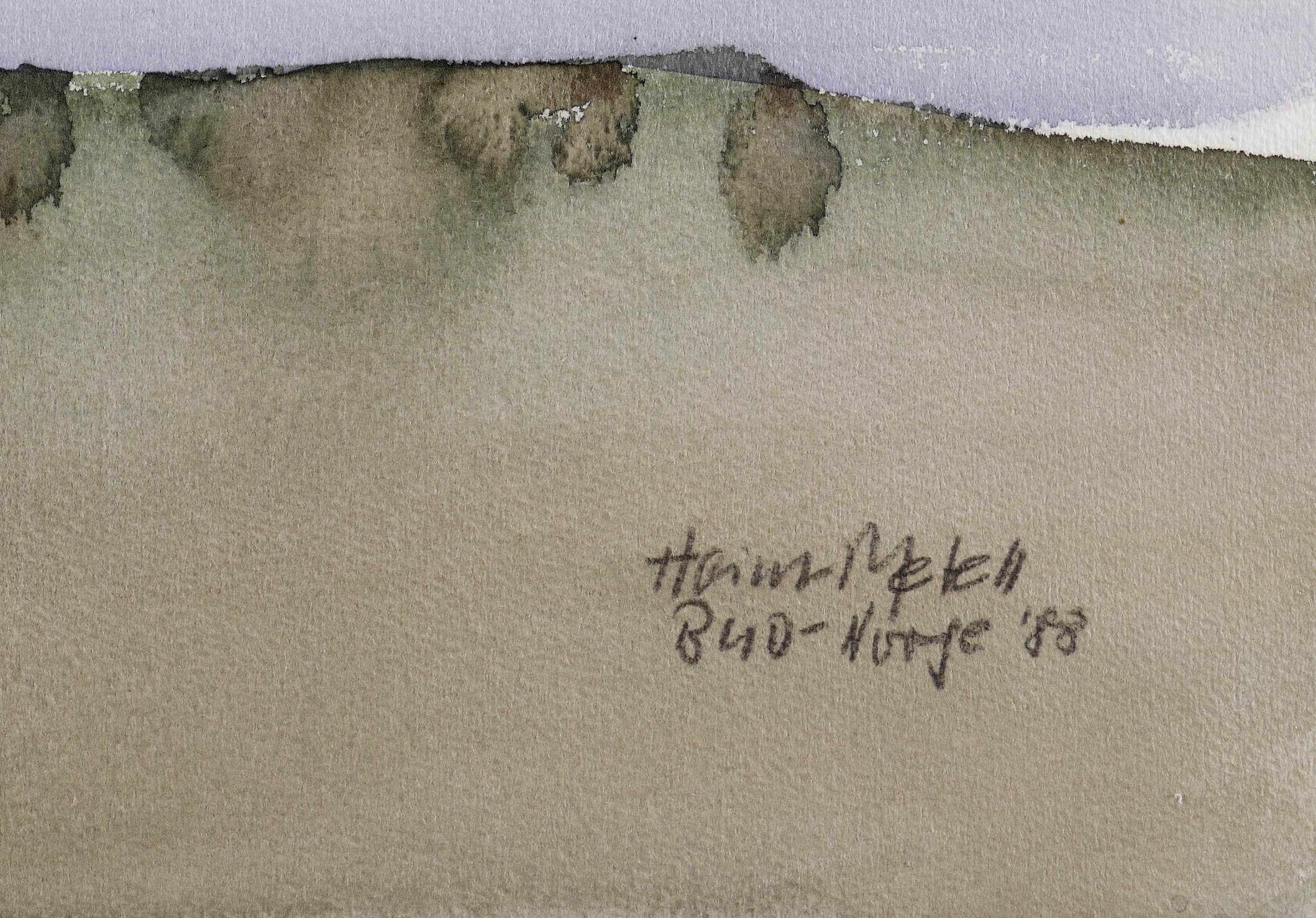 1988. Aquarell, auf hellchamois Büttenpapier. – Originale Künstlergrafik, von Heinz Metell. – Unikat. – 47,0 x 61,5 cm (Darstellung / Blatt).