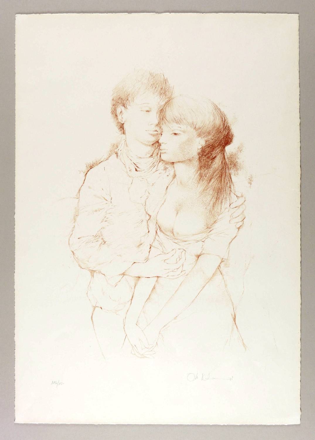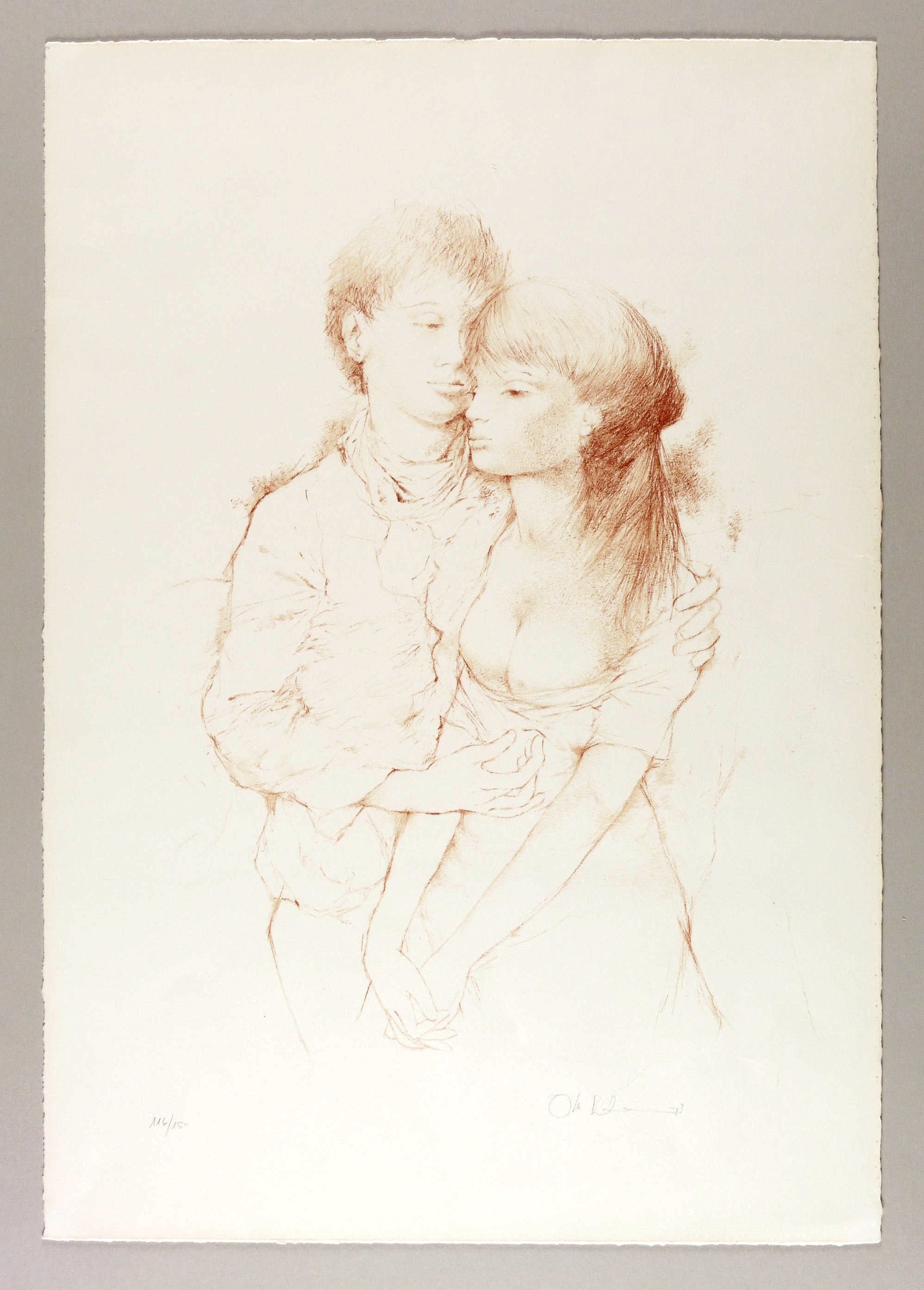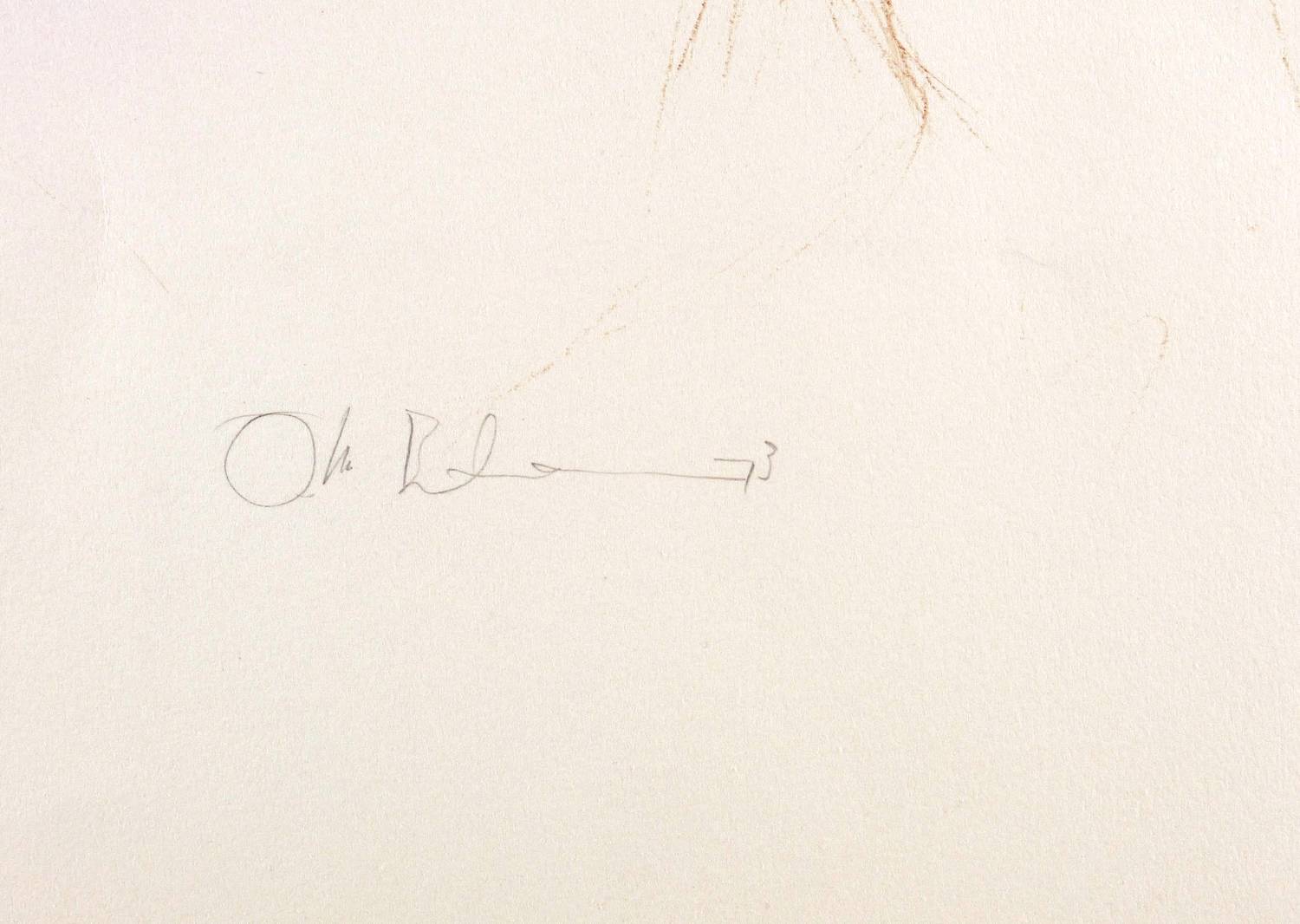1973. Lithografie / Kreidelithografie, in Rötelton, auf festem chamois Velinkarton. – Von Otto Bachmann. – Auflage Exemplar Nr. 116/150. – 48,6 x 32,8 cm (Darstellung / Druckbild), 68 x 47 cm (Blatt).